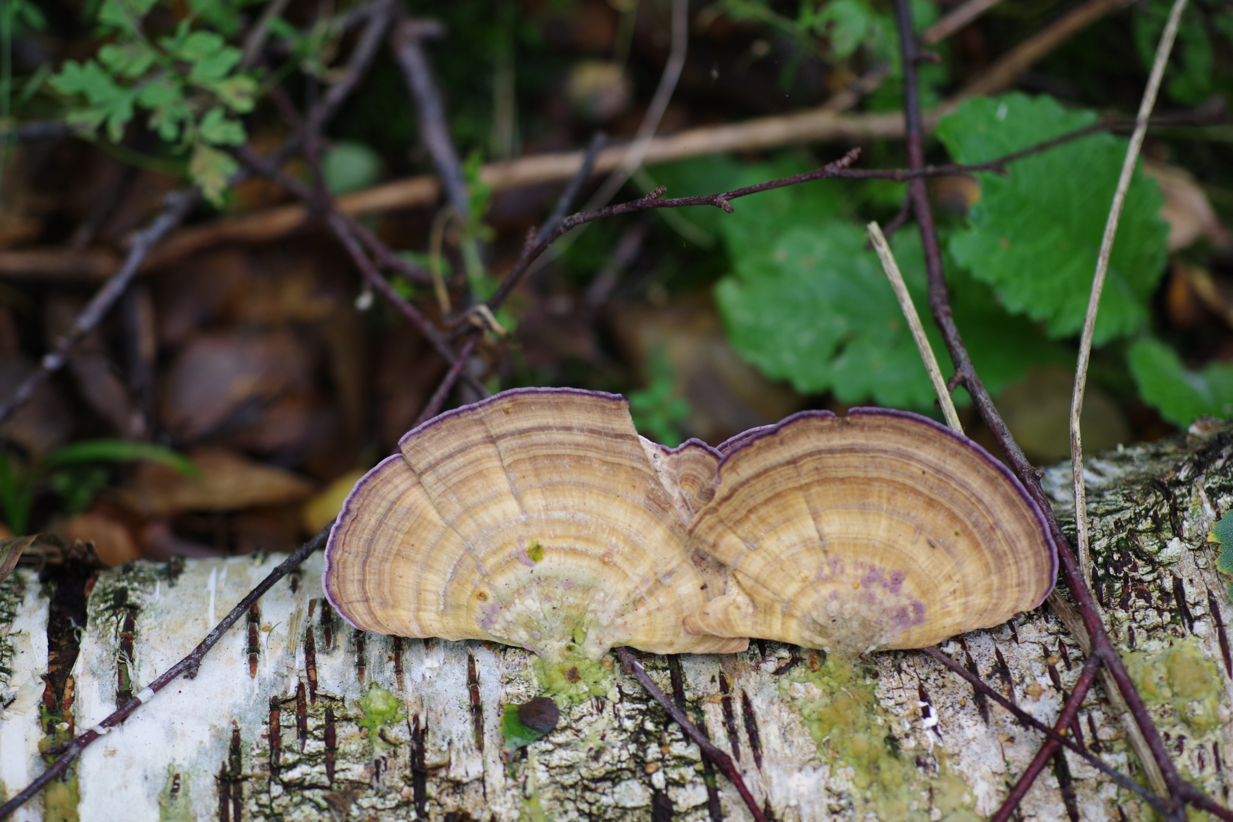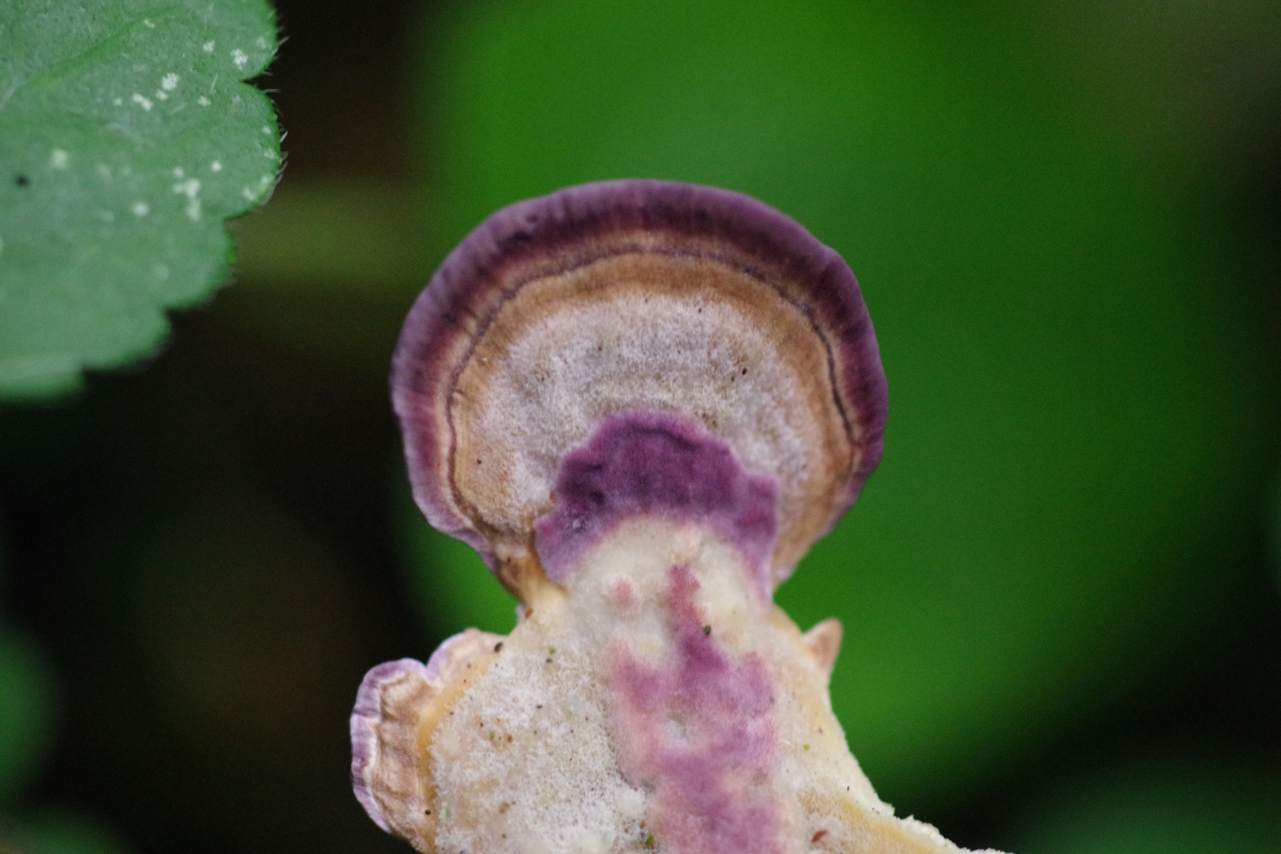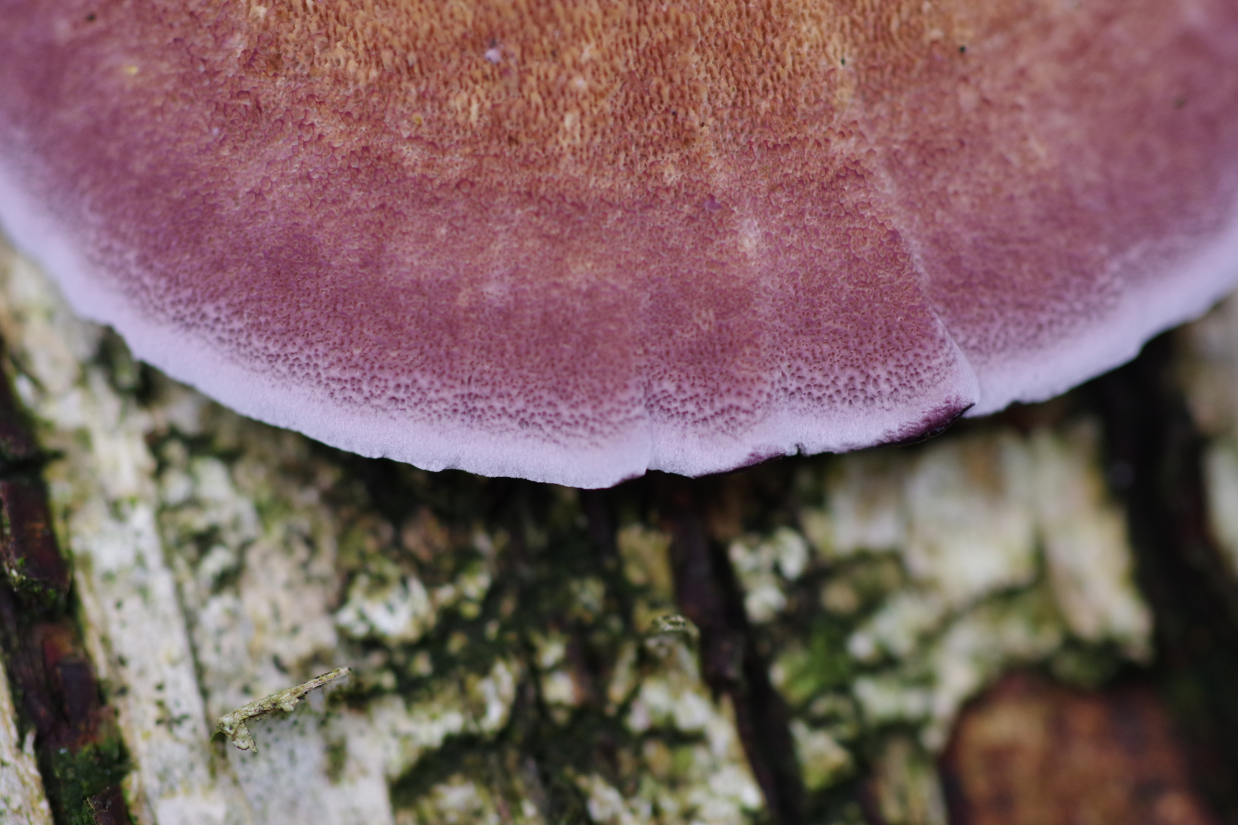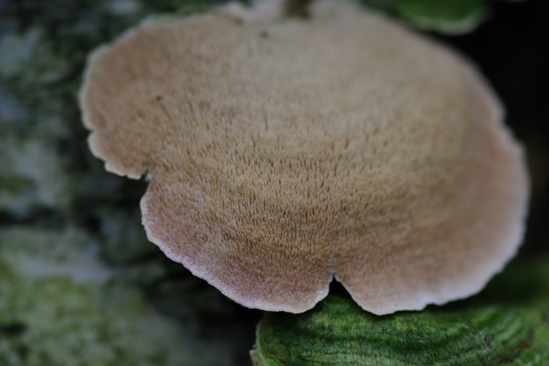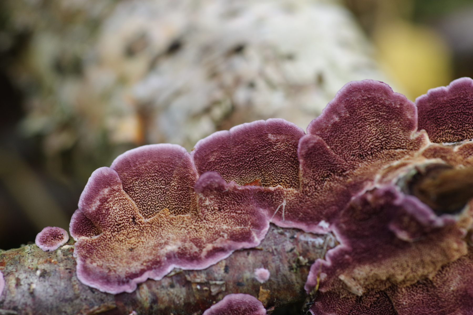 Ältere Fruchtkörper ohne Violett und komplett irpexoid, auch die sind bis 6 cm breit