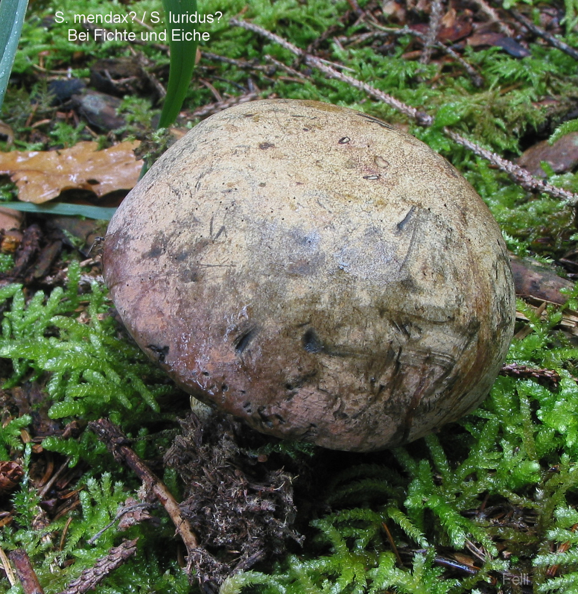 Hut ca 7 cm Durchmesser, olivebraun, Rand rosarötlich -eigentlich wie eine typisische Netzhexe.