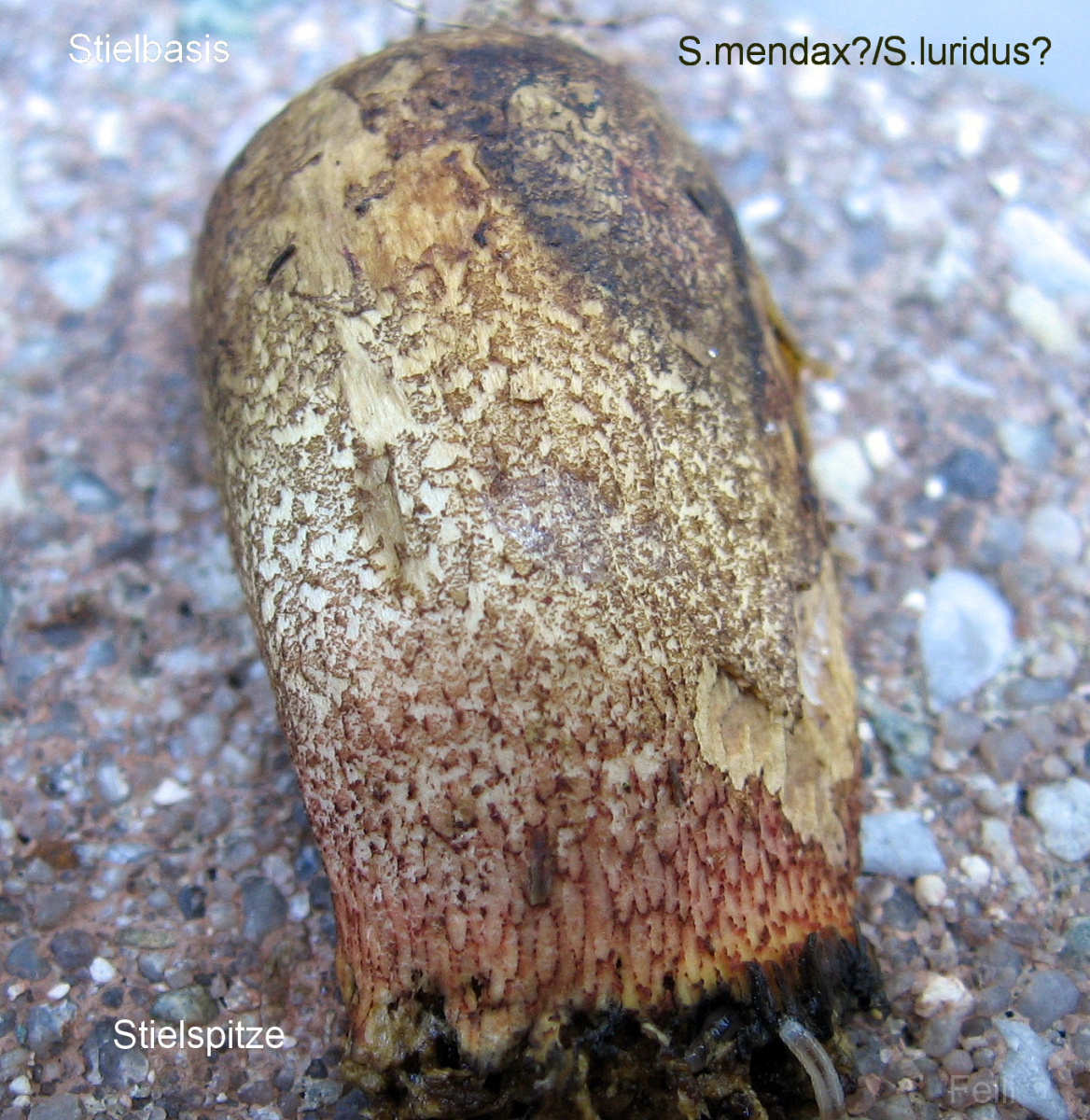 Stiel ca.: 5 cm x 2cm, kurz unter der Stielspitze netzig sonst dunkelflockig.