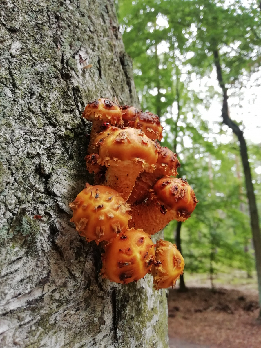 Feuer-Schüppling fällt schon mal raus, weil der erstens ganz anders aussieht und zweitens fast ausschließlich auf Nadelholz wächst.,