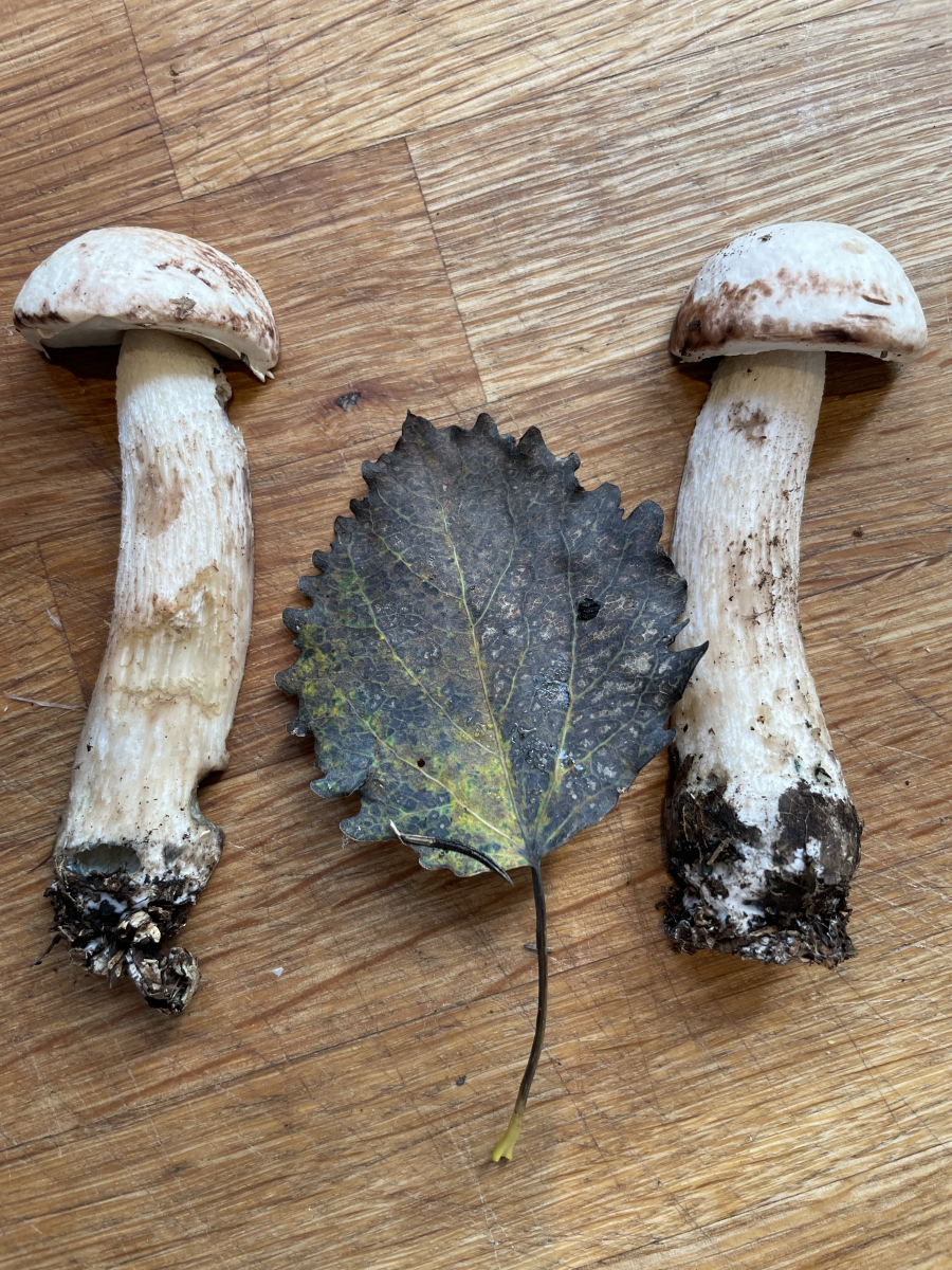 Eine Arbeitskollegin und Pilzfreundin, der ich die Bilder gesendet habe, meint, dass es sich auch um einen weissen Birkenpilz "Leccinum scabrum var. niveum" handeln koennte. Wie seht ihr das?