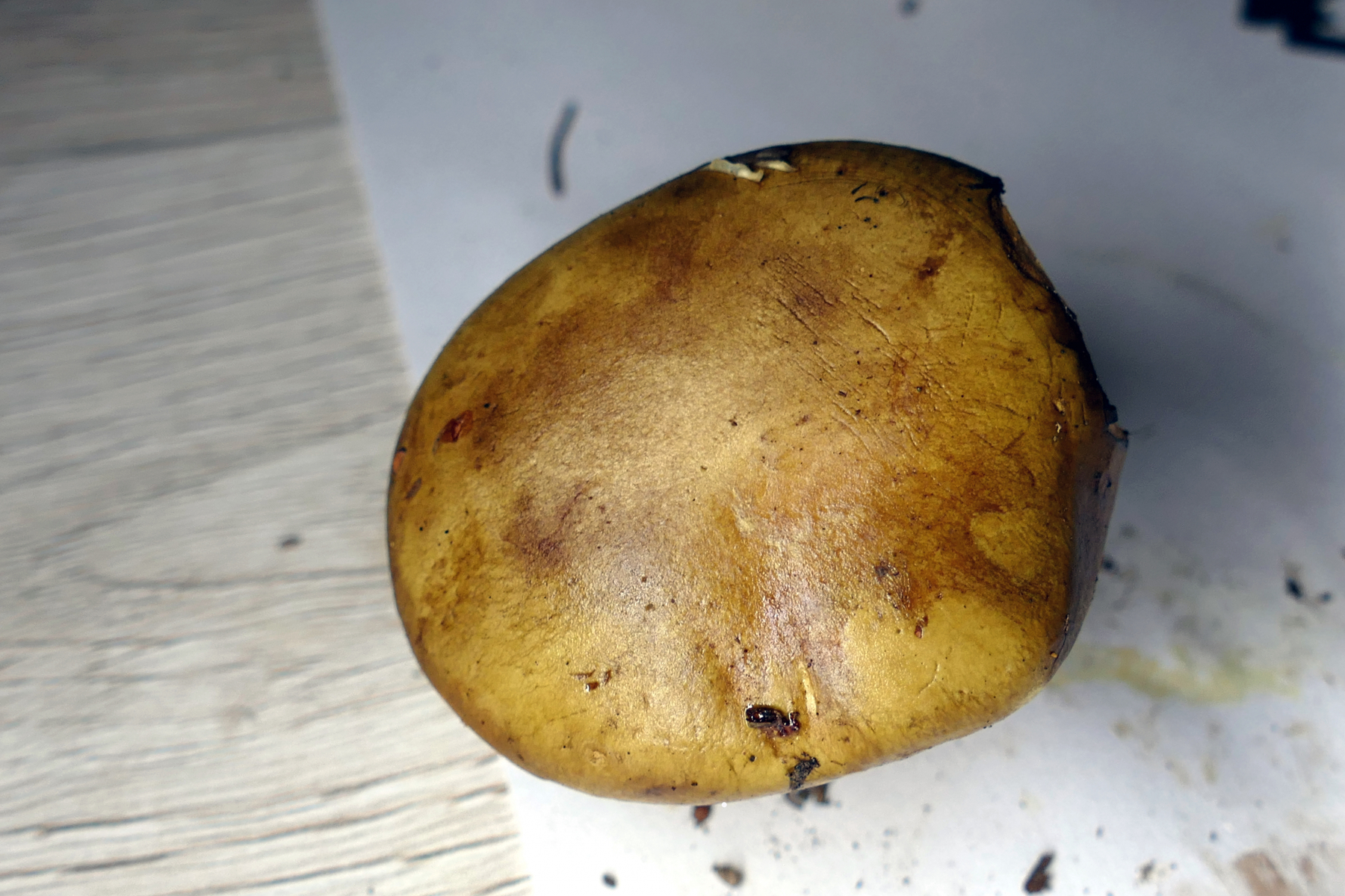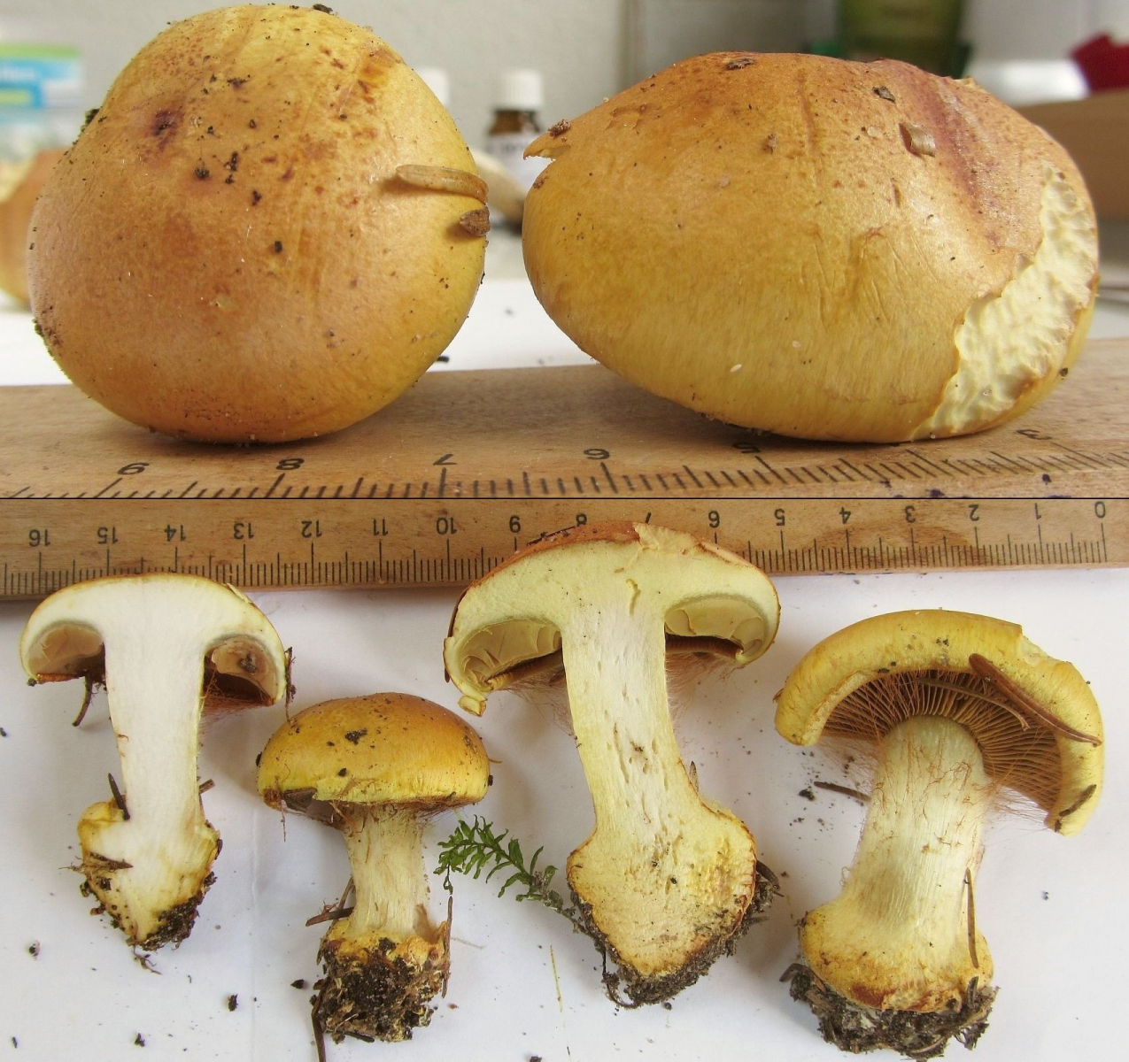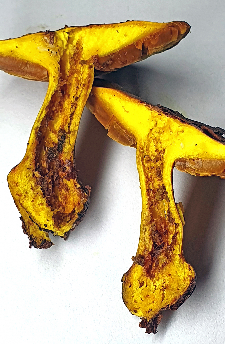 Vom Nächsten 06 Cortinarius varius habe ich leider nur leidliche Studioaufnahmen, da wir den so im Vorbeigehen (die Bäuche knurrten) noch entdeckt und mitgenommen haben. Chromgelbfärbung im Fleisch mit 10% KOH