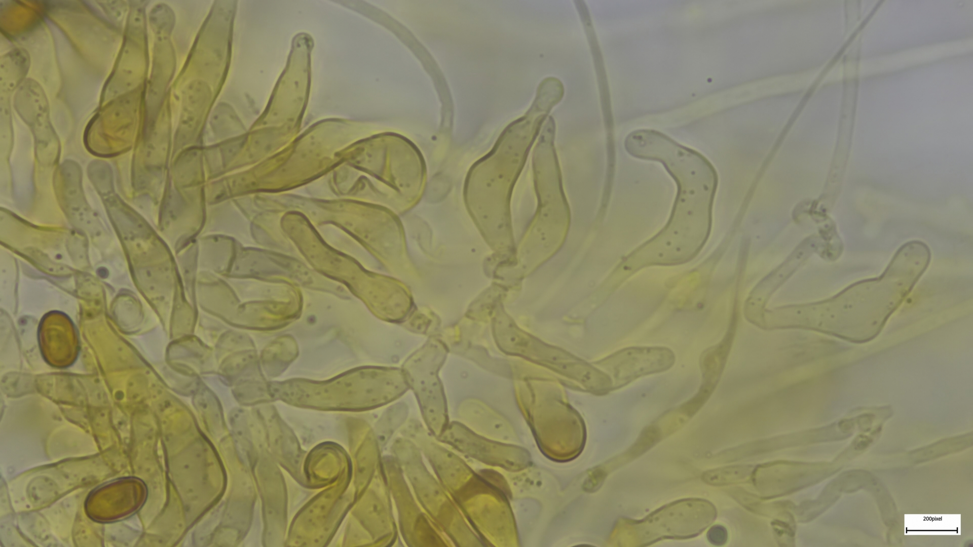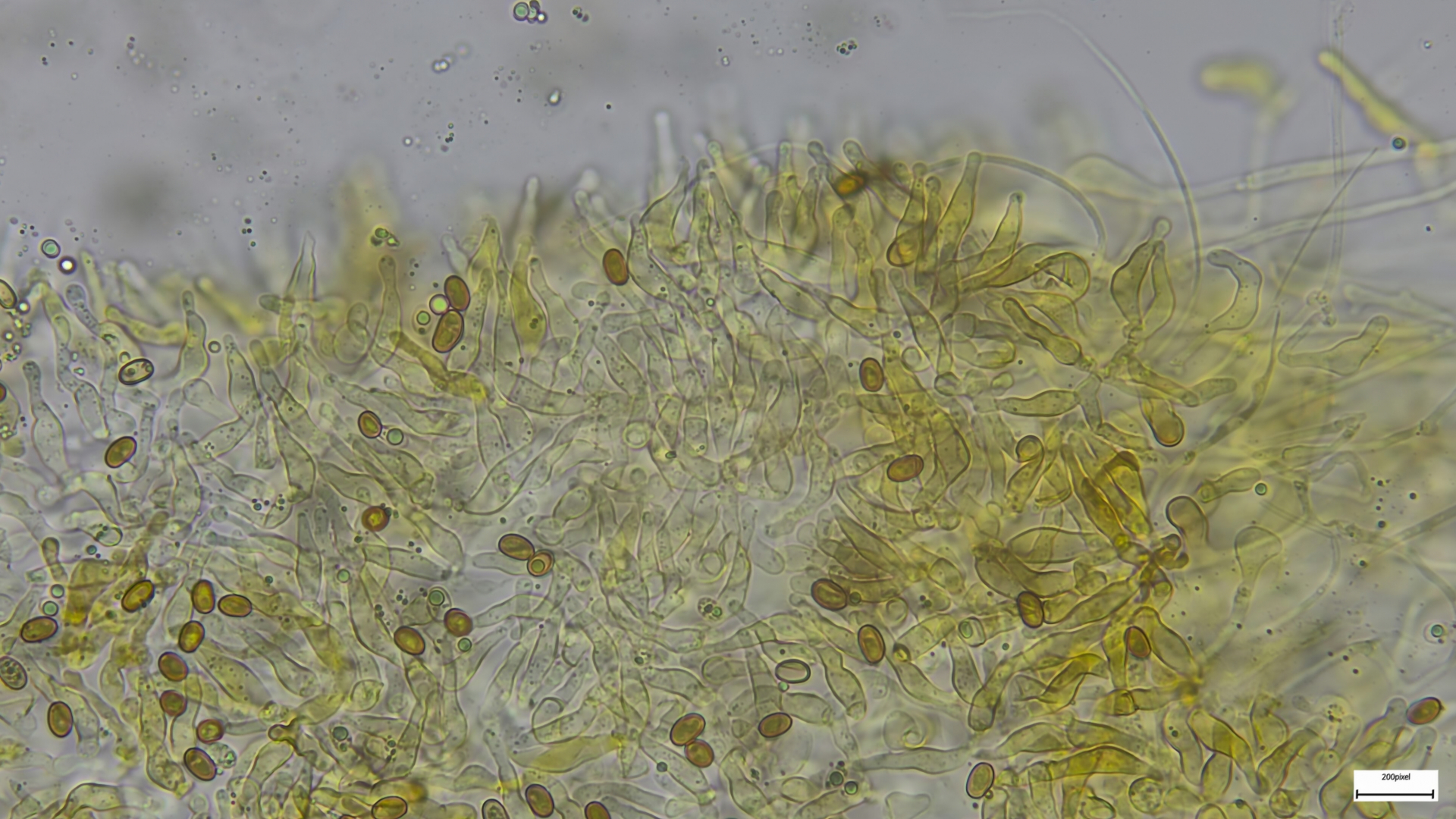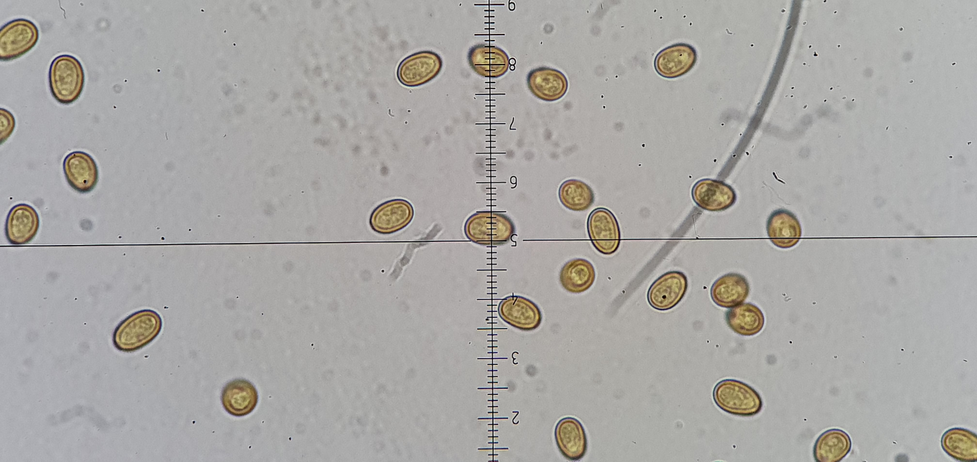 Bestimmungsrelevant waren (neben der makroskopisch geführten Eingrenzung auf die Gruppe) die Sporenbreite und die Cheilos.