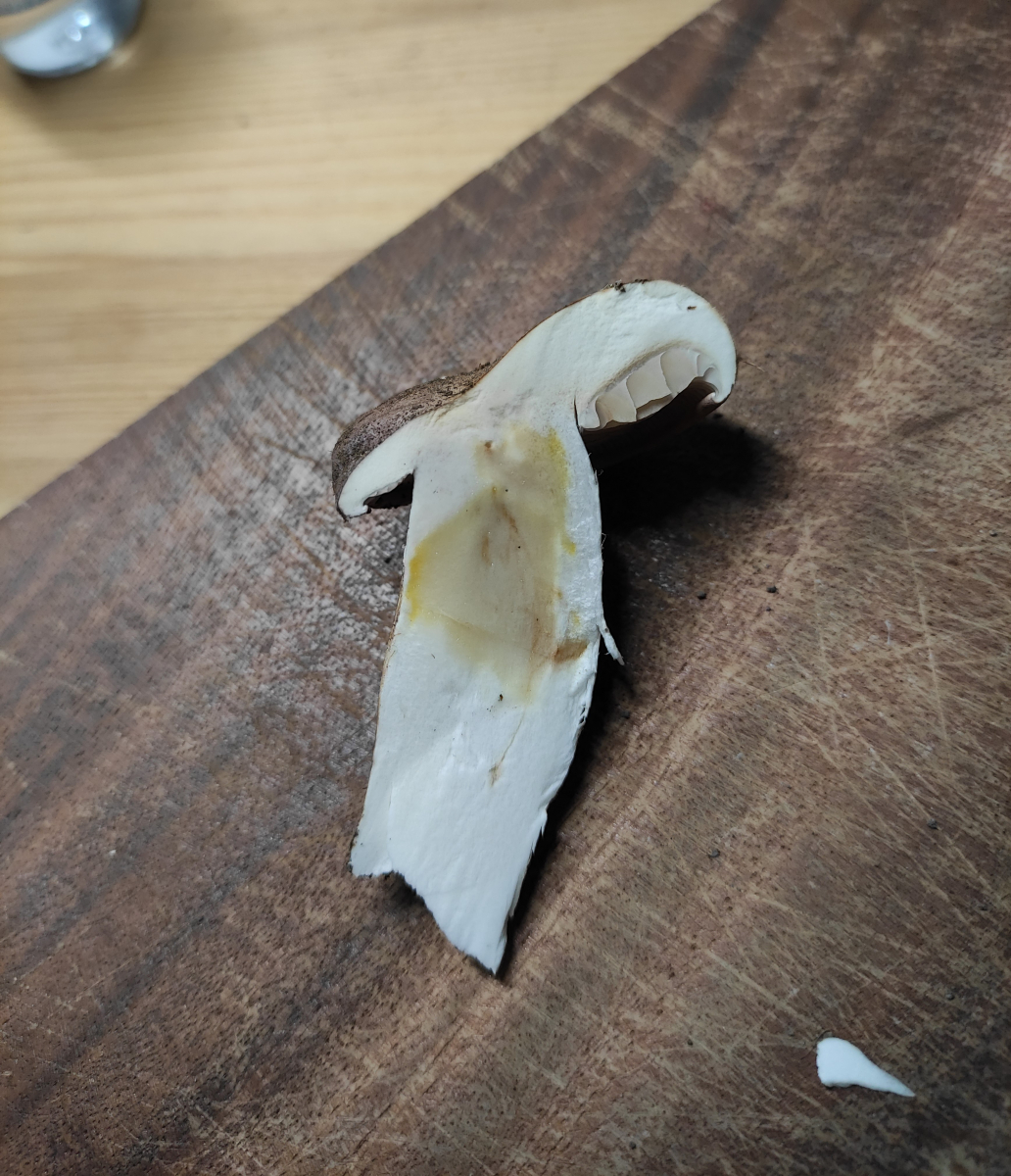 Sporenabwurf mache ich noch, falls da irgendwelche Fallstricke beim Mikroskopieren sind bitte Bescheid geben - ich hatte noch keinen Cortinarius unterm Mikro. Scheinbar muss man die Sporen wohl in KOH3-5% anschauen? Kann ich die darin auch gleich messen oder kollabieren die da und verfälschen die Messung?