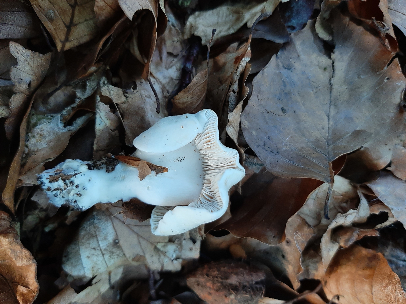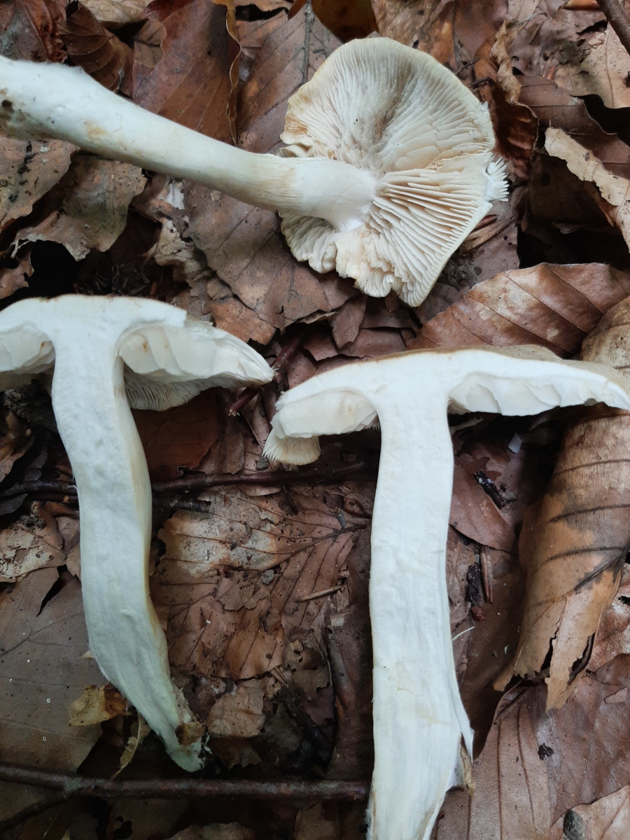 Hab hier einen weißen Vertreter mit Braun-oder auch Gelbtönen den ich so gar nicht zuordnen kann. Weiß nicht mal ob auf den Bildern wirklich die gleichen Pilze zu sehen sind, gehe aber doch schwer davon aus;)