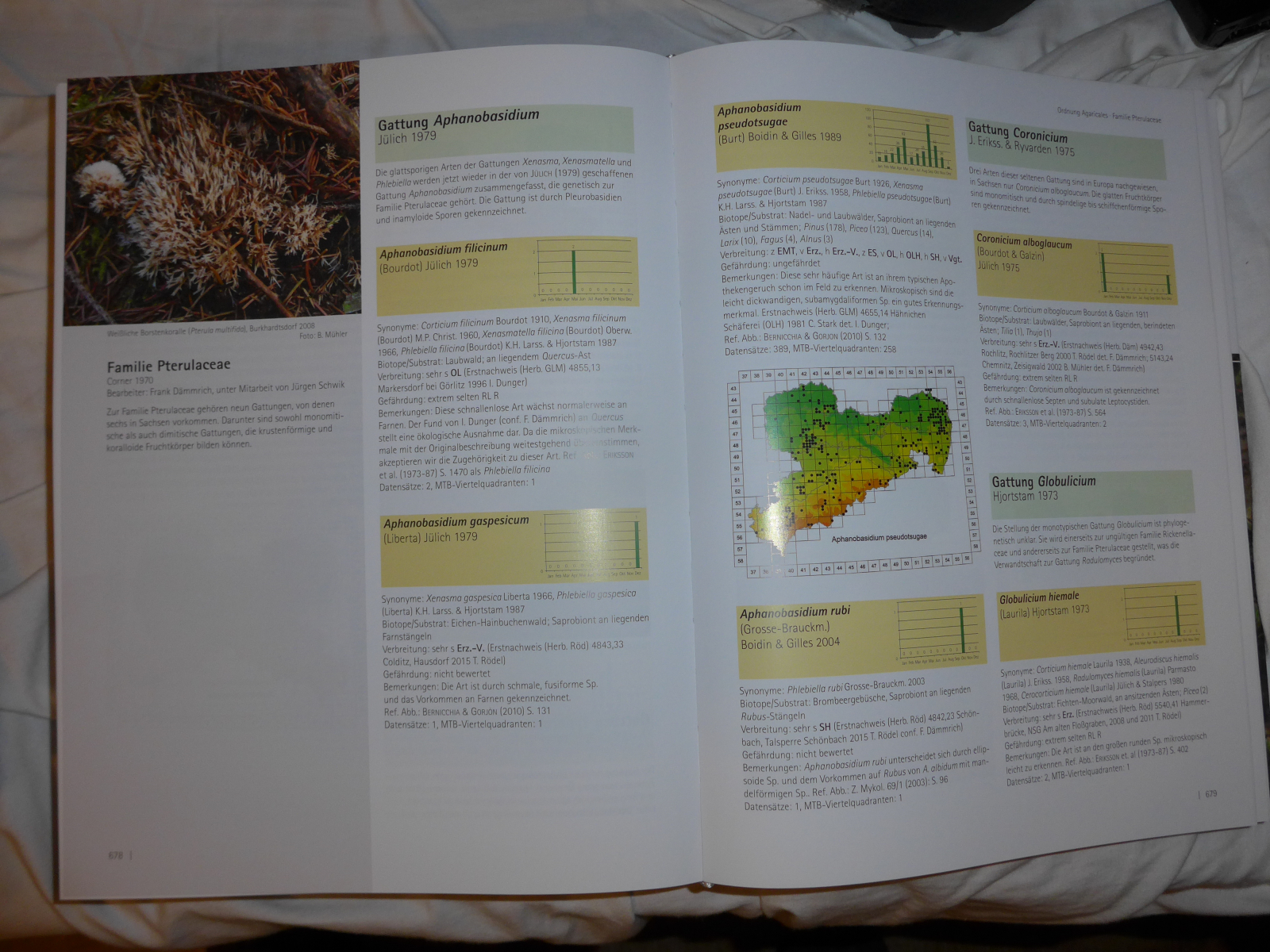 endlich. Am Freitag wurde die offizielle Pilzflora in Sachsen der Öffentlichkeit feierlich vorgestellt. Es waren dazu 50 ehrenamtliche Mitarbeiter, bzw. Autoren geladen. Wie sich zur Feierstunde herausstellte, war das eins der Gründungsziele der AGsM (Arbeitsgemeinschaft der Sächsischen Mykologen). Diese war btw. 1988, also vor über 30 Jahren. Seitdem flossen die Kartierungsergebnisse in dieses Werk ein. Es wurden auch historische Quellen/Floren ausgewertet. Sogar die Tagebücher von Alexander von Humboldt von seiner Zeit in Freiberg wurden ausgewertet. Es haben viele namhafte Mykologen als Autoren und Experten mitgarbeitet; u.a. sind dies Hans-Jürgen Hardtke, Tomentella-Frank, Peter Welt, Thomas Rödel, Friedemann Klenke, Nobi, lamproderma, hengu, Toffel, viele weitere fleißige Kartierer und meine Wenigkeit. In dem Werk wurden ausschließlich sächsische Kartierungsergebnisse verwendet. Somit ist das ähnlich GPBW wieder eine wichtige Quelle zu Phänologie und Ökologie der jeweiligen Arten. Es wurden auch sehr viele Bilder vonwendet, insbesondere von Arten, die nicht so häufig in anderen Werken abgebildet sind. Bis zum Readaktionsschluss wurde auch die zu diesem Zeitpunkt gültige Taxonomie übernommen, so dass die sächsische Pilzflora eins der taxonomisch aktuellsten Werke gilt. Zudem glänzt das Werk mit sehr guten Kurzbeschreibungen der Familien, Gattungen und Arten.