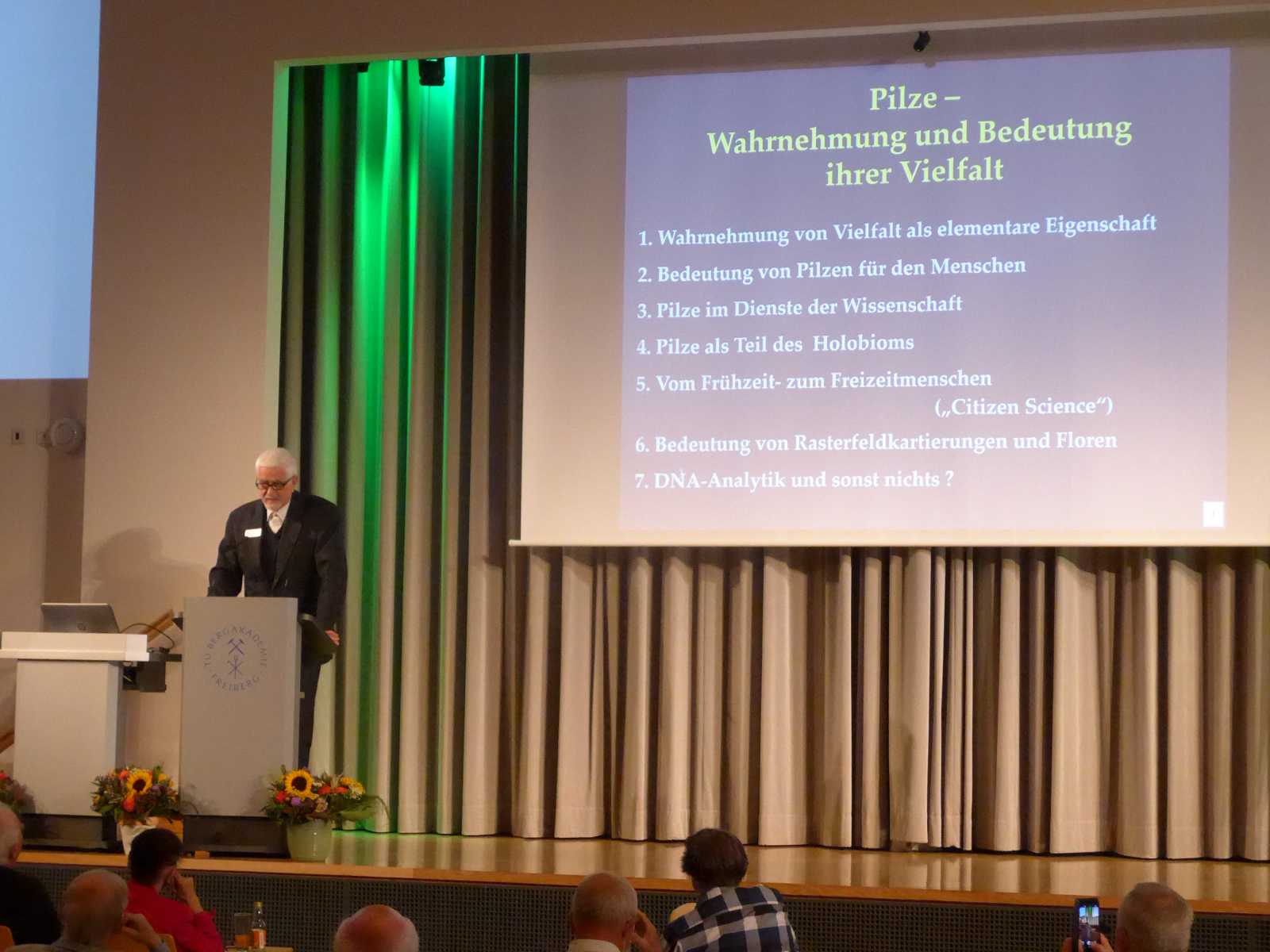 Zur offiziellen Buchvorstellung hielten auch prominente Festredner einen Vortrag. So hat Prof. Dr. Andreas Bresinski seinen Vortrag "Pilze - Bedeutung und Wahrnehmung ihrer Vielfalt" und Dr. Heinrich Dörfelt seinen Vortrag über "Lebensstrategien der Pilze" gehalten. Dadurch bekam die gesamte Veranstaltung einen würdigen Rahmen.