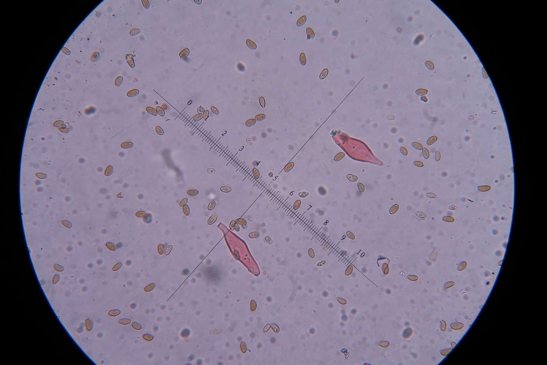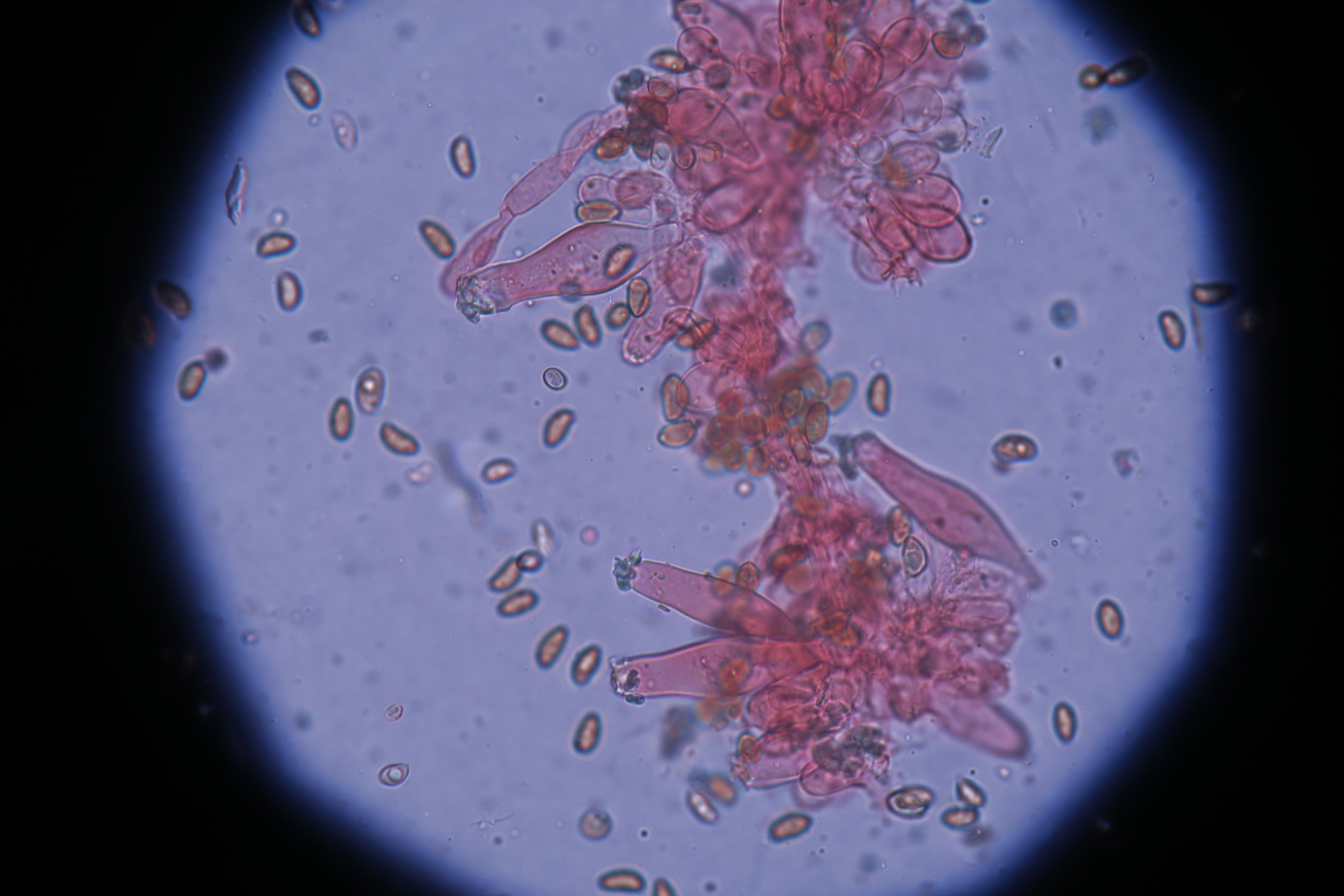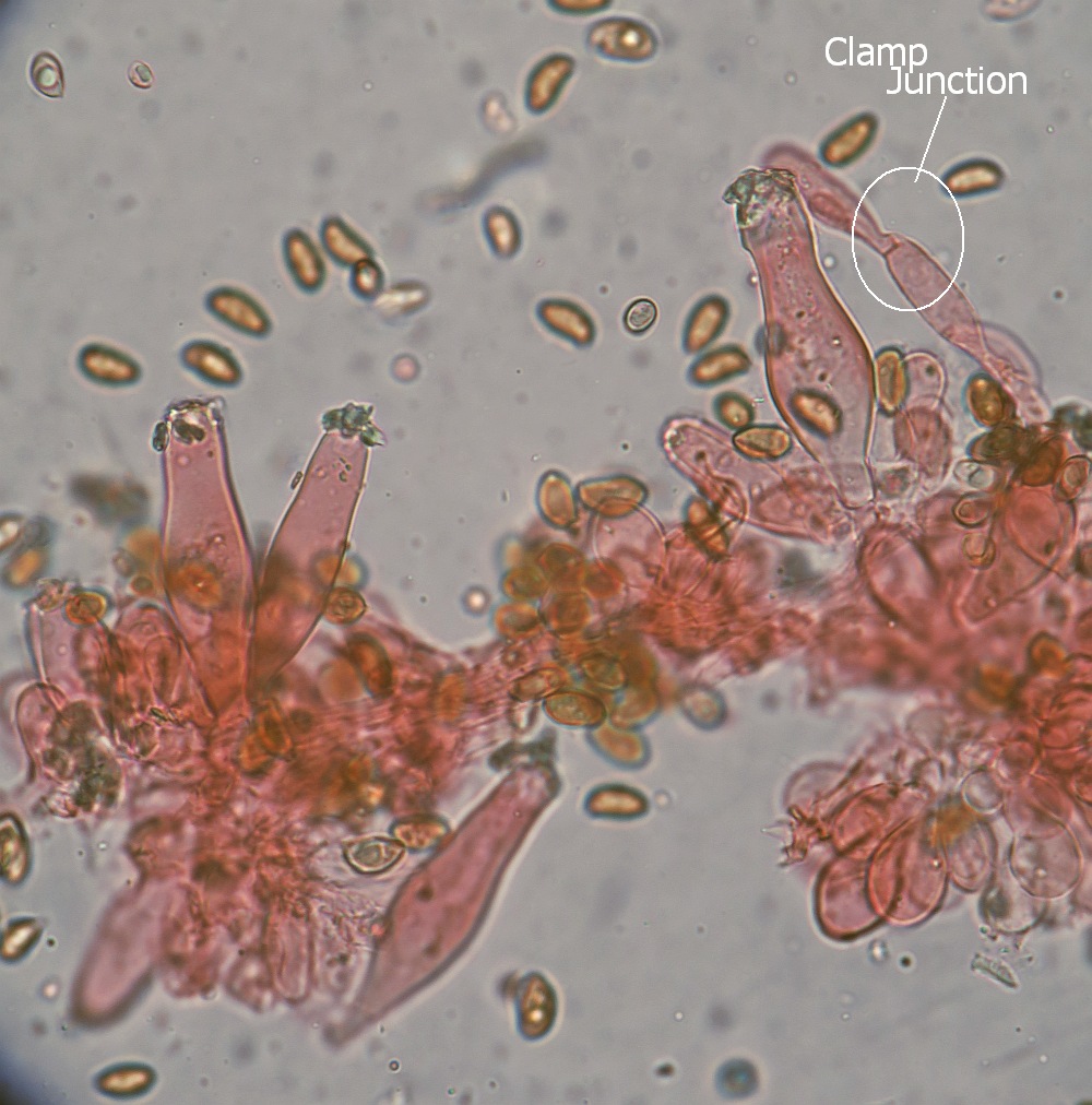 My options are short listed on fuscidula / nitidiuscula / leiocephala. The spores are broadly ellipsoid navicular (front view), almond-shaped (dorsal view), 10.6-13.2 um x 5.2-7.6 um (mean12.1 x 6.6) with a Q of 1.8 +/- 0.3. The cheilocystidia have a thick wall (not extremely thick) with apical crystals, in clusters 60-70 x 13.5-18um, while the pleurocystidia are more or less similar but not frequent and usually solitary.