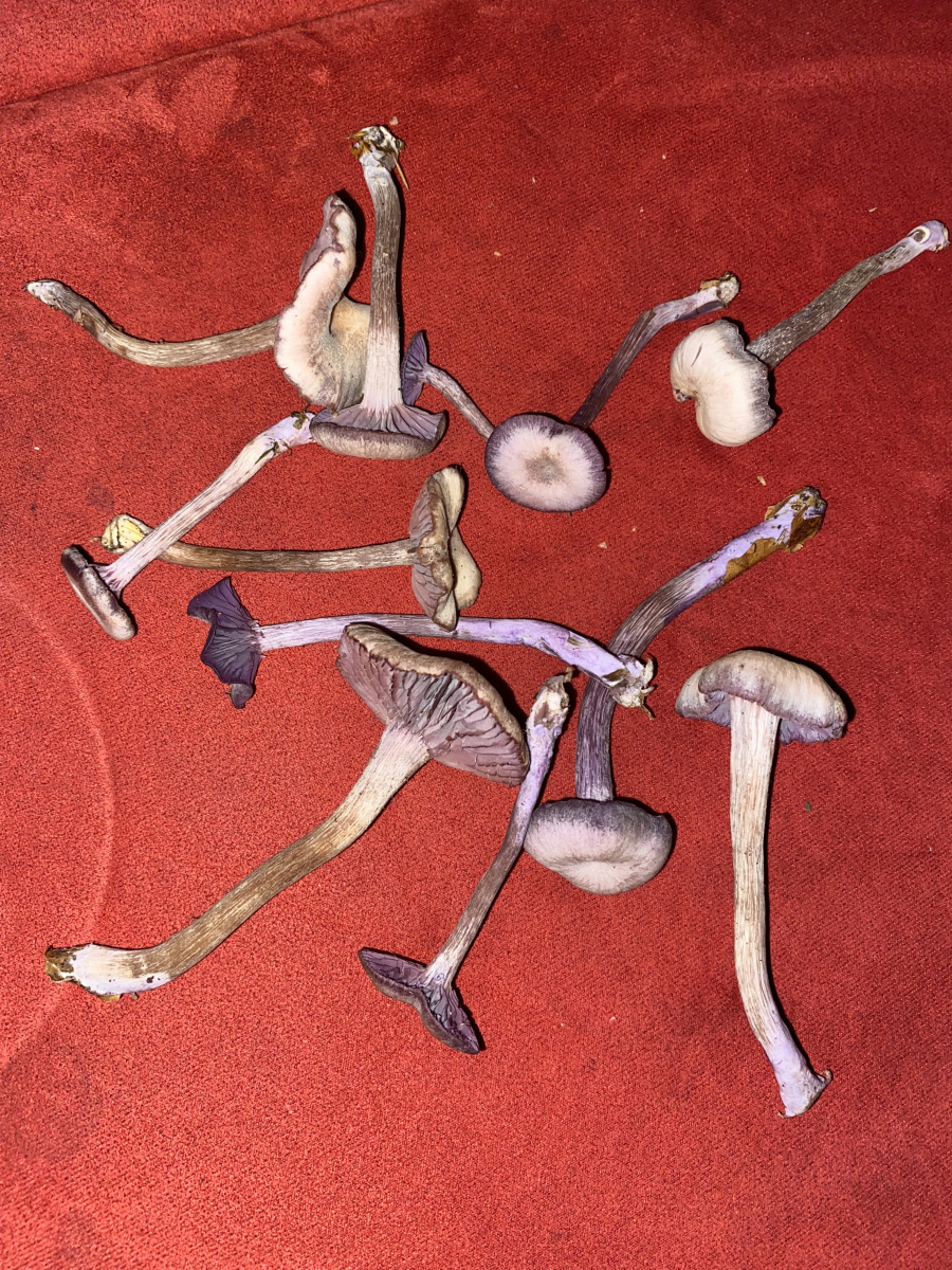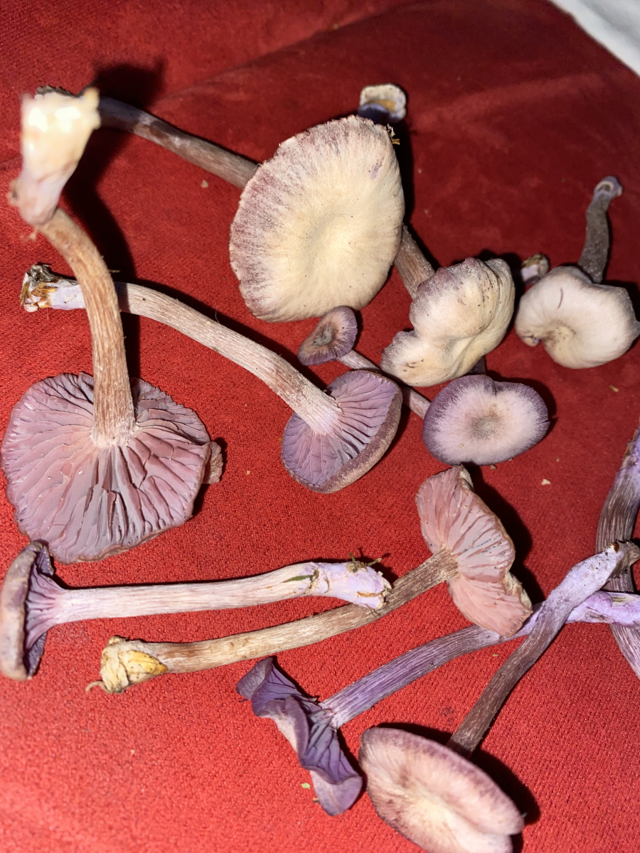 Ich füge mal ein paar Bilder ein um sicherzustellen, dass es auch zu 100% violette Lacktrichterlinge sind. Es wäre schön eine professionellere Meinung zu bekommen.