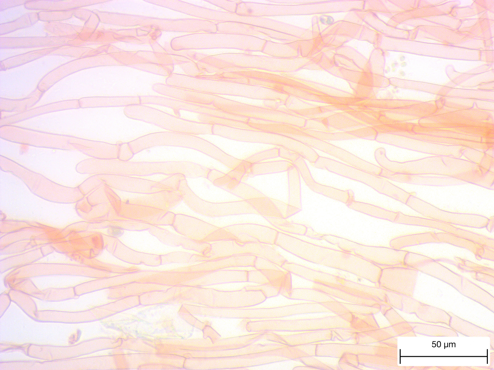 • Liebe Claudia, ich seh zu wenig, und du hast zu wenig gemessen, um sicher zu sein, aber klar ist, dass das nicht Inocybe ochroalba ist. Der Stiel von der Art ist ganz bereift und die Zystiden haben meist eine (sub)clavate Form. Nach deinem Habitat bei dir zu schließen, in Verbindung mit den schmalen Sporen (falls diese eine Angabe, die ich sehe und die mit 4,? anfängt typisch ist) ist das vermutlich schlicht Inocybe sindonia. Die wächst im Augenblick überall.
