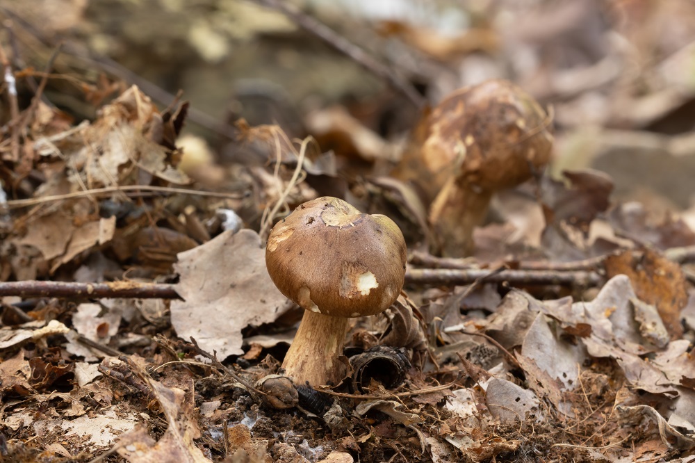 in einem Mischwald (Corylus, Betula, Carpinus und Quercus) gab es braune Lamellenpilze.