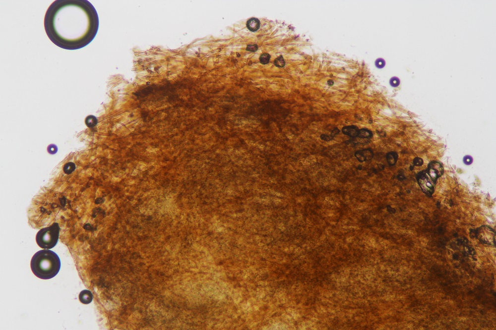 Ich habe ja mittlerweile auch schon eine ganze Reihe Skalps von braunen Rittern mikroskopiert, und interessanterweise haben die alle irgendwo inkrustierendes Pigment.