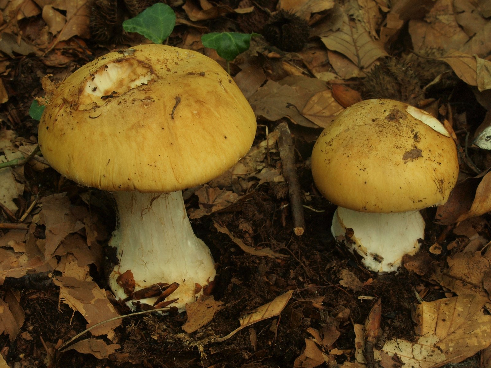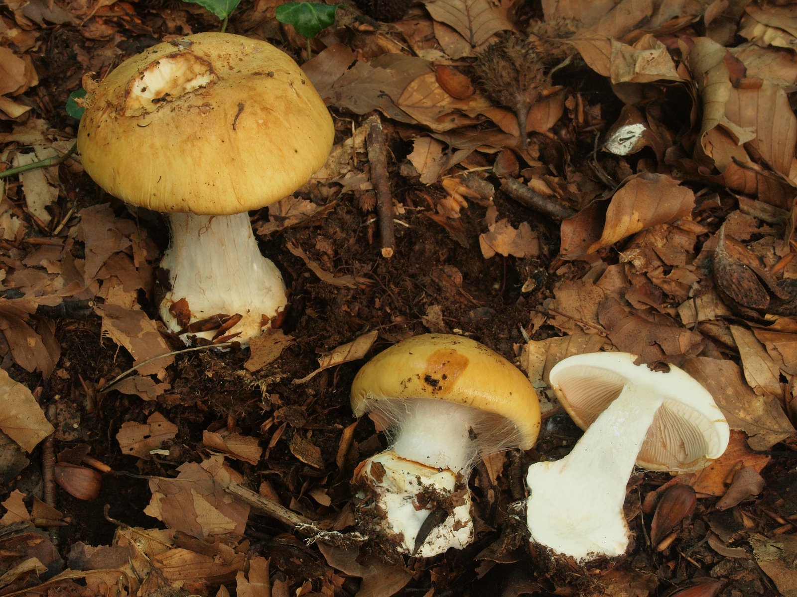 Die Art hat deutlich gelbes Velum am Knollenrand und