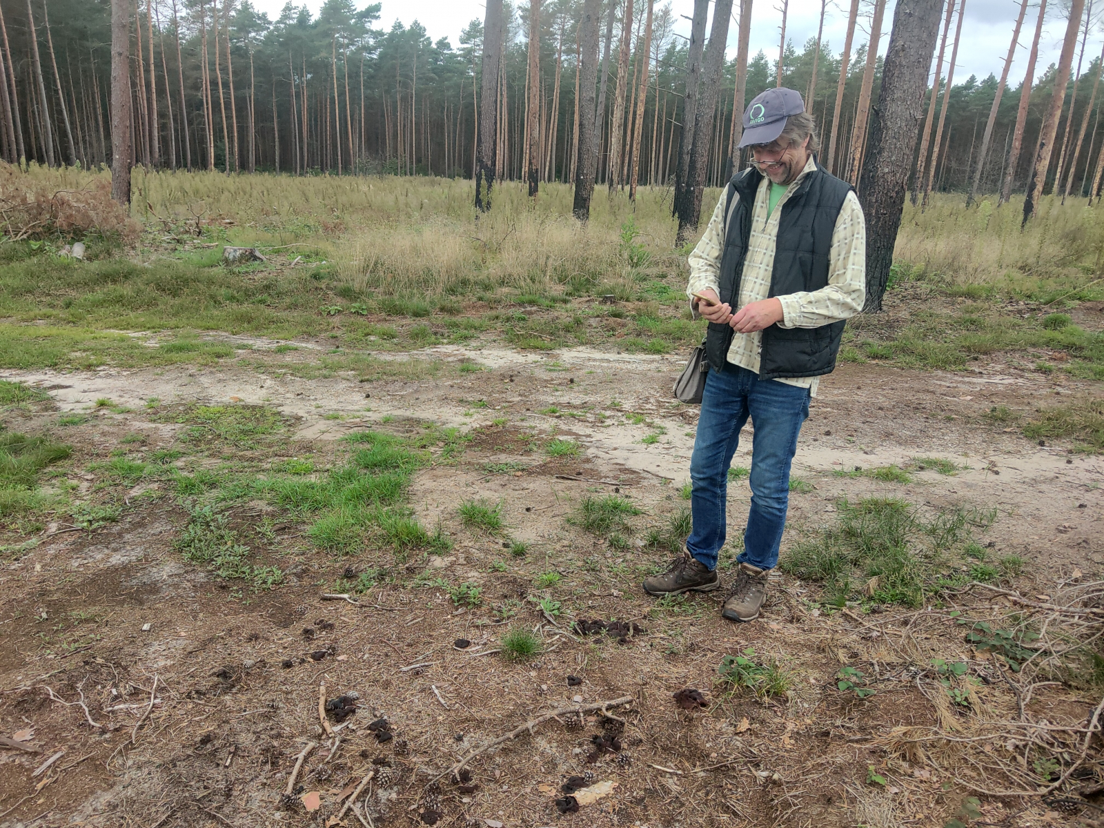 gestern hat es die Zeit endlich mal wieder erlaubt und es ging auf eine Exkursion an verschiedene Plätze in der südlichen Lüneburger Heide. Mit von der Partie waren Carina und Heiko. Unsere erste Anlaufstelle war eine große Brandstelle, an der ich im vergangenen Jahr bereits mit Eike zusammen sehr erfolgreich war (Hier gehts zum Bericht). Dieses Jahr ließ sich dort bei meinen wenigen Besuchen bisher nichts Spannendes finden. Der Weg dorthin durch den Kiefernwald war wenig vielversprechend, außer einigen Täublingen und Milchlingen gab es nicht viel zu sehen, so dass die Erwartungen gering waren. Dort angekommen dauerte es jedoch nicht lange, bis Carina den ersten Brandstellenbewohner entdeckte und wir ein kleines Freudentänzchen hinlegten: Wir fanden ein Massenaspekt von Rhizina undulata, der welligen Wurzellorchel in allen Altersstadien! Einer der Pilze, die man mal im Pilzbuch sieht und unbedingt finden möchte.