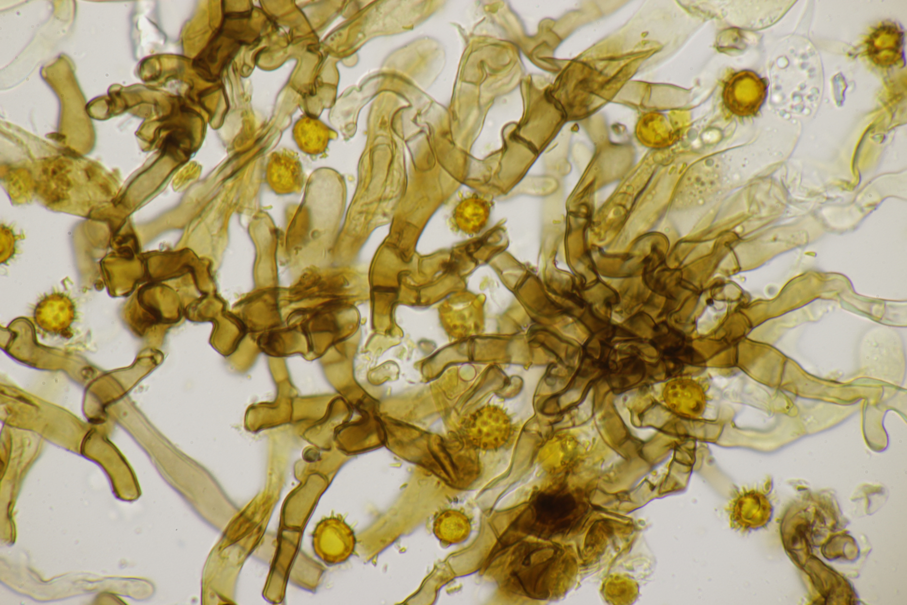 letzten Freitag habe ich bei einer Runde durch den Stadtwald wieder zwei Tomentellas entdecken können. Makroskopisch sind die ja immer eher unscheinbar unterwegs, im Mikroskop entfaltet sich dann aber die ganze Schönheit