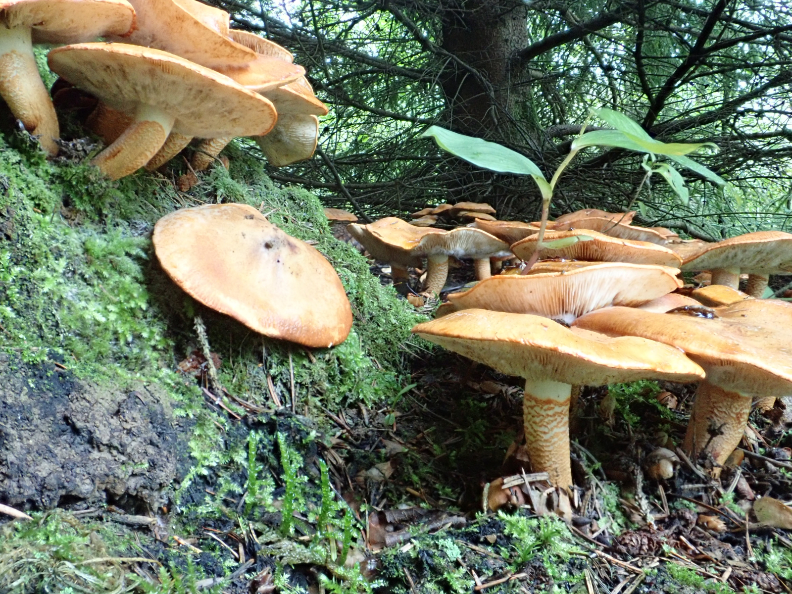 So standen die Fichtenschonungen voller Orangeroter Ritterlinge, Tricholoma aurantium in großen und zahlreichen Hexenringen.