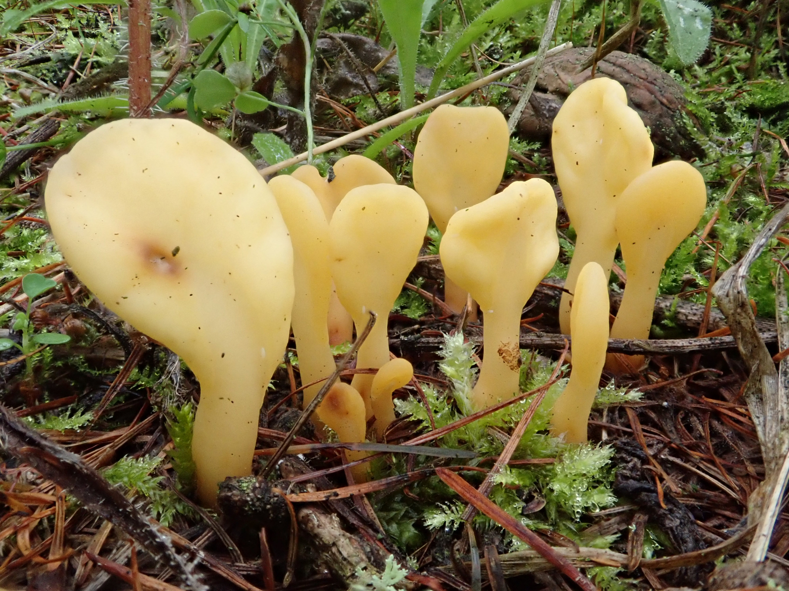 Zwischen den Lärchen standen auch wieder Massen an Goldgelben Spatelingen - Spatularia flavida. Immer wieder hübsch anzusehen.