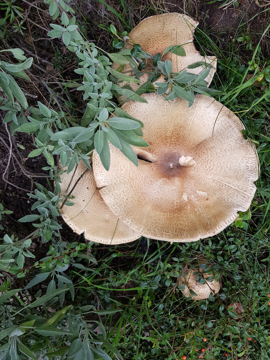 Hallo liebe Pilzkenner, ich habe in unserem Garten rund um den Salbei mehrere große Pilze stehen. Wenn sie groß sind gerader Hut mit dunklen Lamellen ( bis 25 cm ) , junge Exemplare eher kugelig .