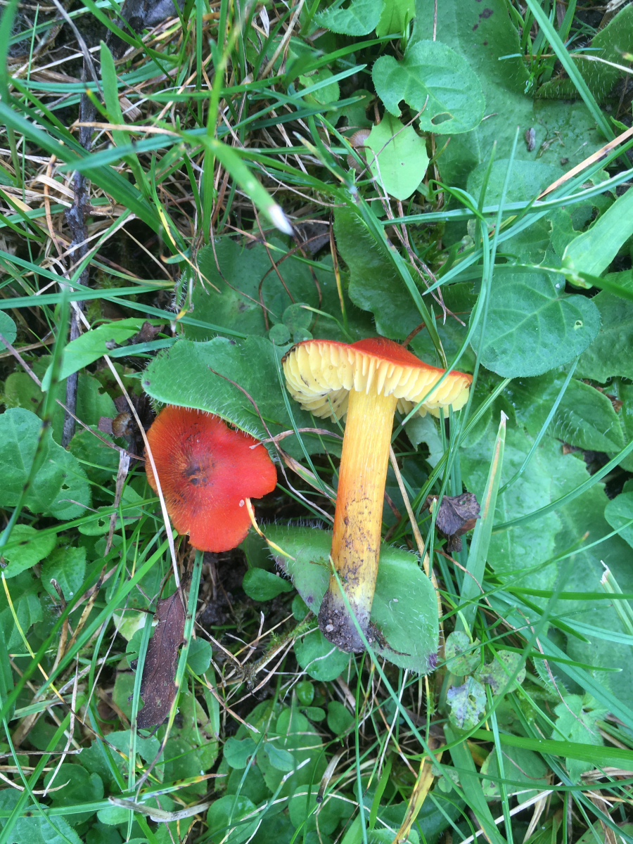 Stiel und Hut waren eher trocken sodass ich mir hier aufgrund des zentral roten und peripher gelben Hutes Hygrocybe mucronella vorstellen könnte oder eben eine alte H. insipida.
