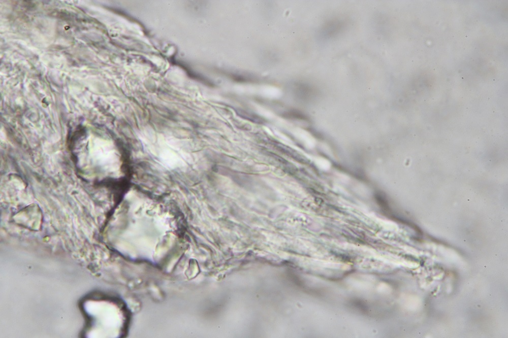 Es gibt keine KOH Reaktion, Zystiden sind vorhanden und es gibt auch reichlich Kristalle die nicht KOH löslich sind.