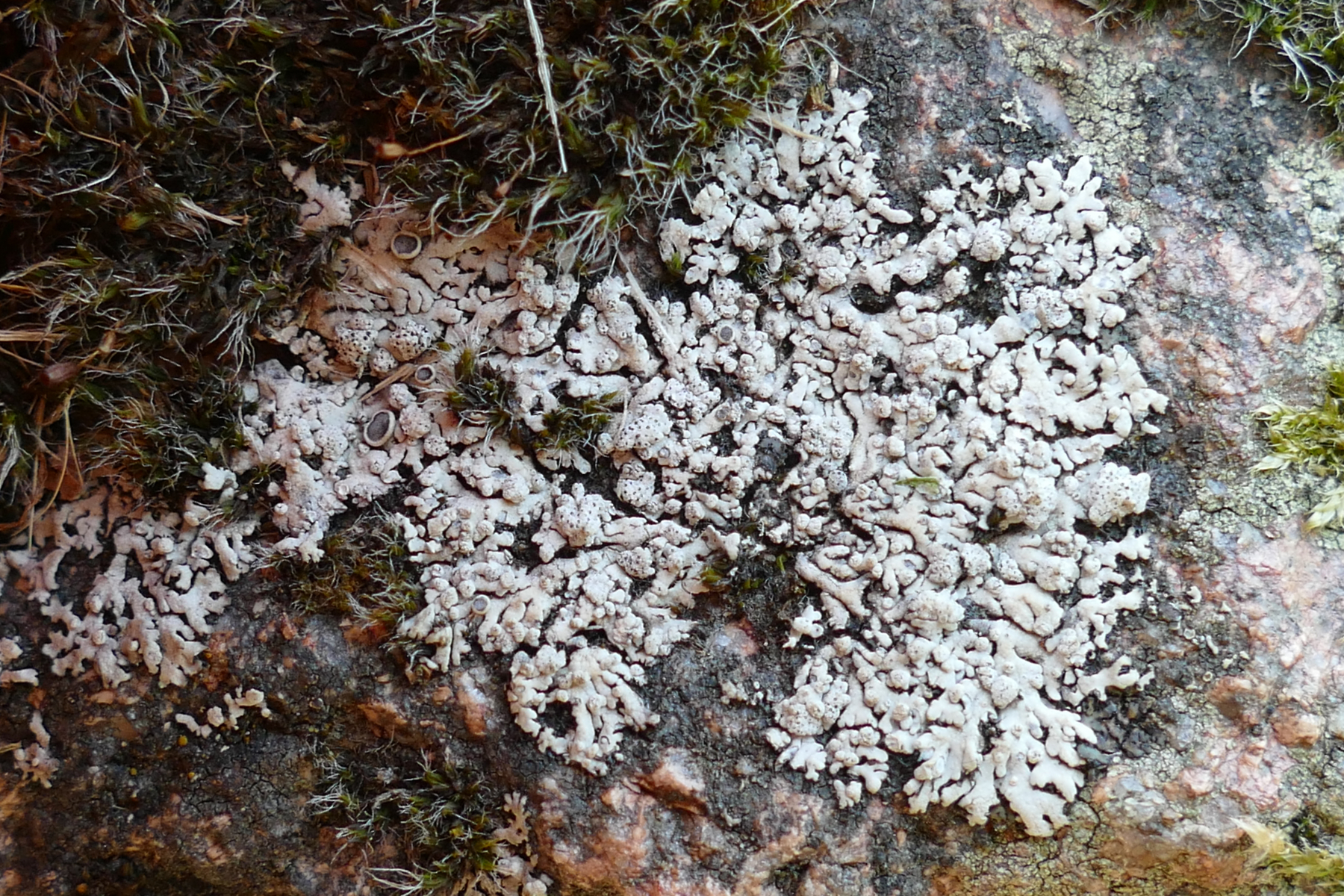 Zumindest in Bild 1 und 4 ist um die aufgenommenen Flechten deutlich ein schwarzer Hof aus hervorlugenden Rhizinien erkennbar.