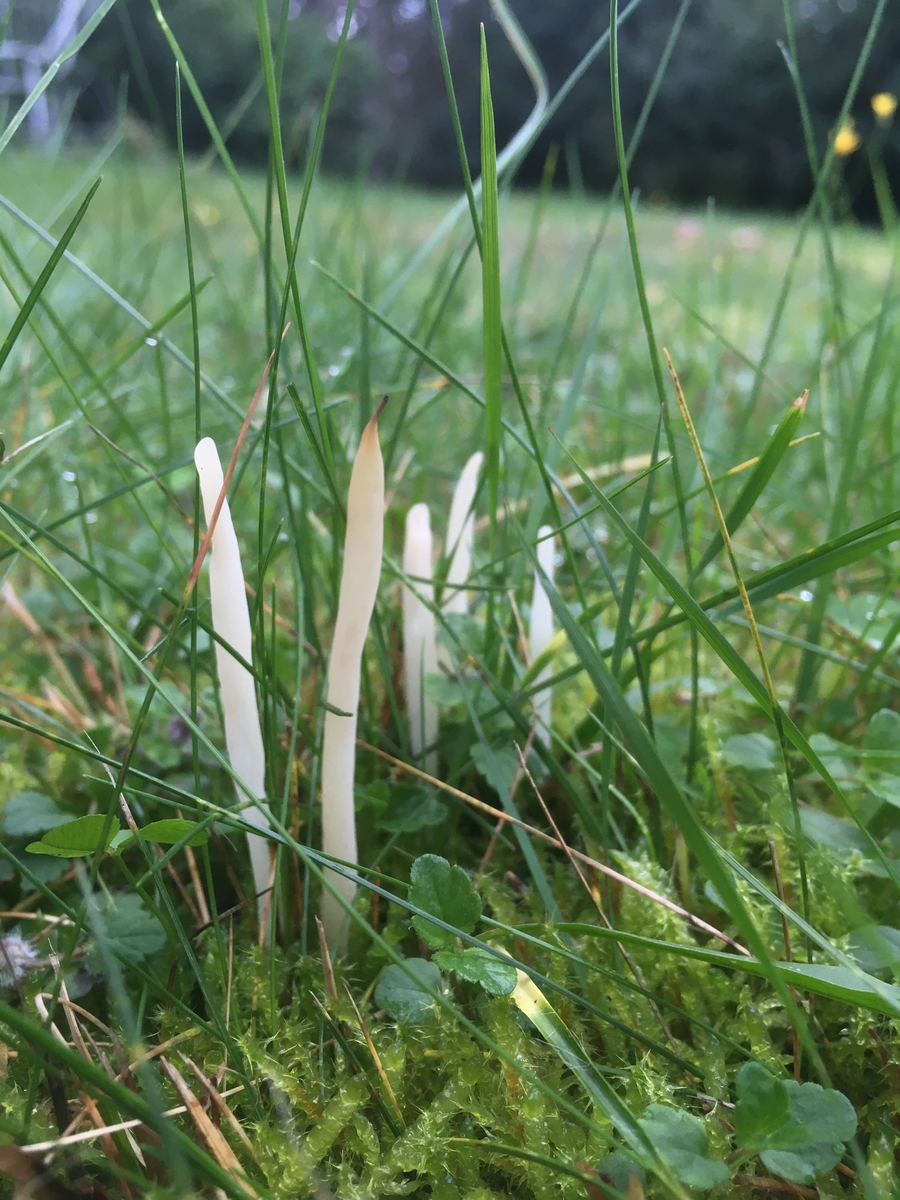 Leicht zu übersehen da als trockene Grashalme getarnt und von all den knalligen Saftlingen überblendet habe ich die kleinen Keulchen und Würmchen oft erst bei weiteren Besuchen meiner neuen Spielwiese entdeckt. Ich fand sie nicht minder faszinierend. Auch mit denen hatte ich mich bisher mangels Funden noch nie beschäftigt und so war ich erstaunt dass viele dieser schlanken Ranken sogar Ständerpilze sind- ich hatte sie eher für Ascos gehalten. Schön blöd- daher habe ich auch großzügig welche eingesteckt in der Annahme sie wären leicht zu mikroskopieren. Tja.... Na ok, ich bin eigentlich schon irgendwie zurecht gekommen, allerdings wollten manche partout nicht absporen so dass ich mehrere Anläufe gebraucht habe. Um im vorhinein zu wissen welche Merkmale wohl wichtig sein könnten habe ich schon mal Makroskopisch selektiert was infrage kommen könnte- witzigerweise leiteten mich die Sporen dann oft ganz woanders hin. Sie scheinen es einem also mal wieder auch nicht allzu leicht zu machen.