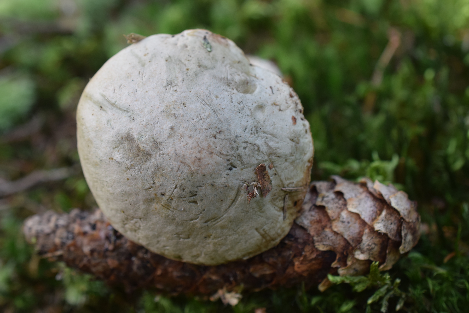 Moor Fund Fichte , Birke , Kiefern in nähe , Geruch Neutral Geschmack Mild ( KOH 20% Test ) Hut sehr groß , nur 1 Exemplar an Standort