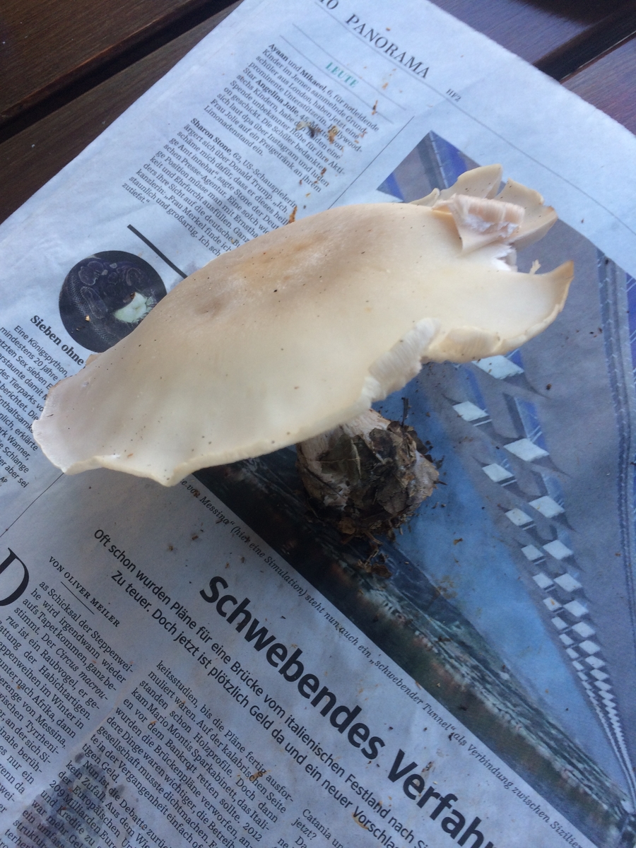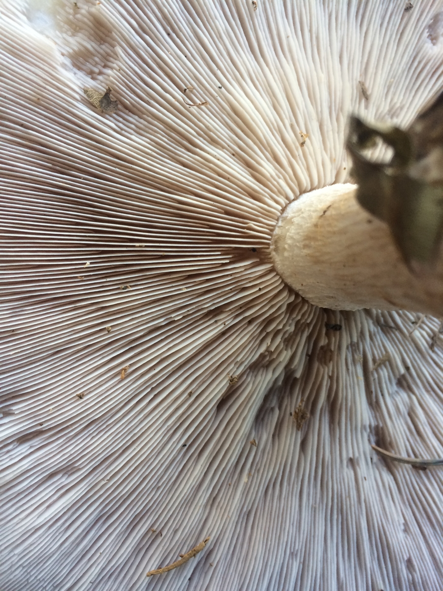 Auffallend die dicke „Fettschicht“ und die sehr gedrängt stehenden Lamellen bei fast 15 cm Hutdurchmesser.