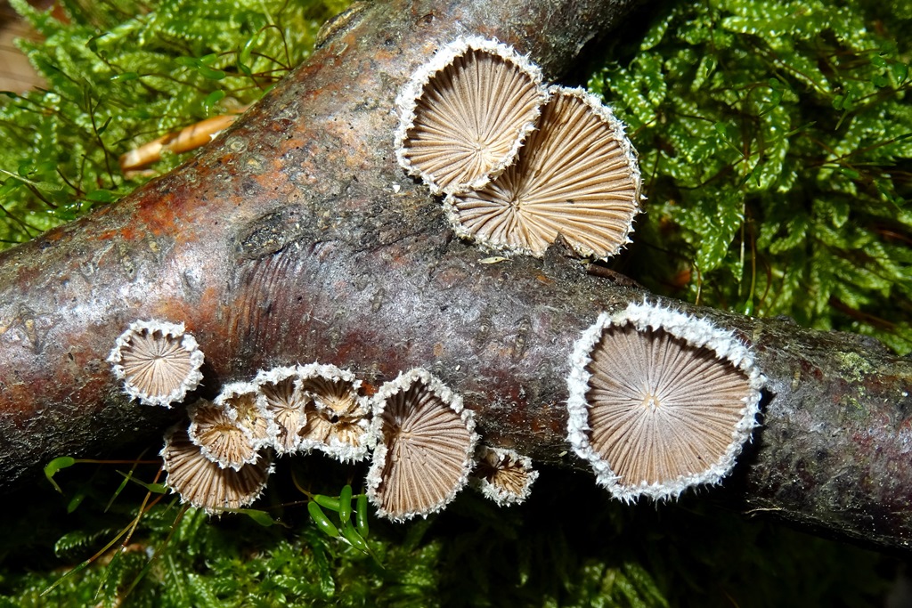 diese kleinen Pilze habe ich an einem Buchenzweig auf dem Waldboden entdeckt.