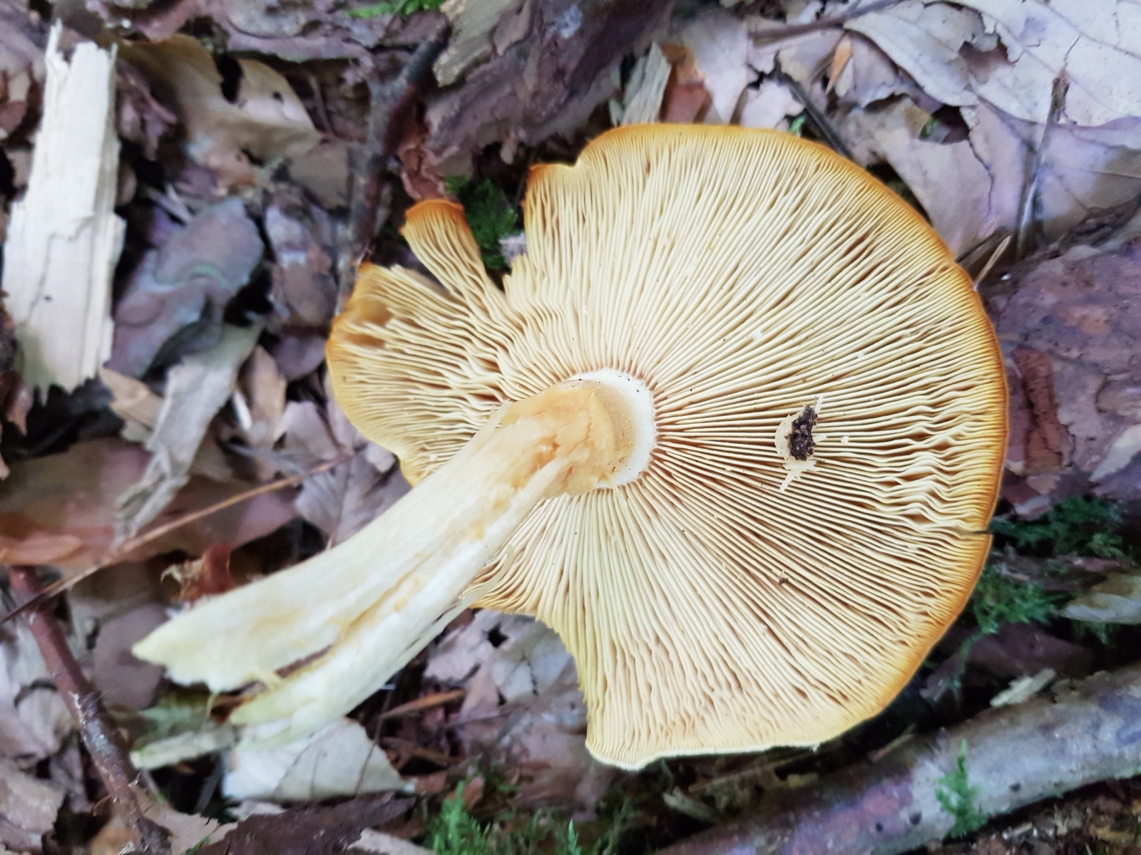 Lamellen mäßig gedrängt, breit bis schmal angewachsen