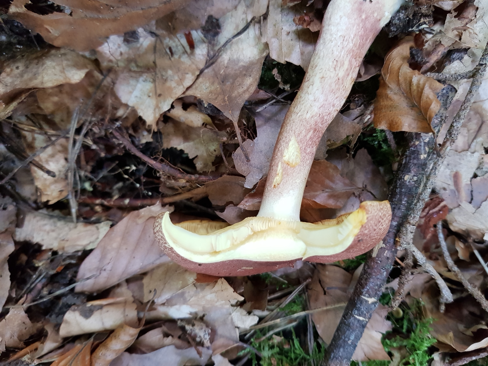 Stiel weißfaserig, Farbverlauf von oben nach unten, Velumreste