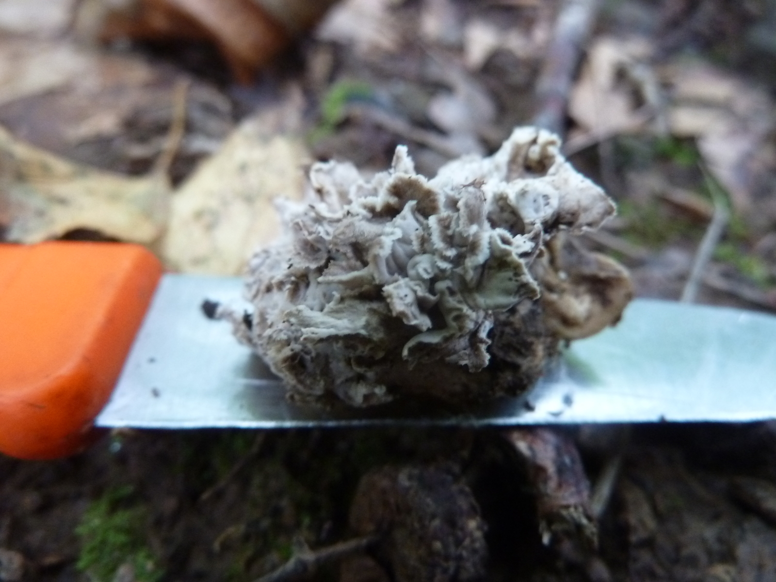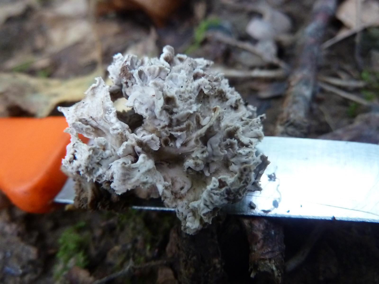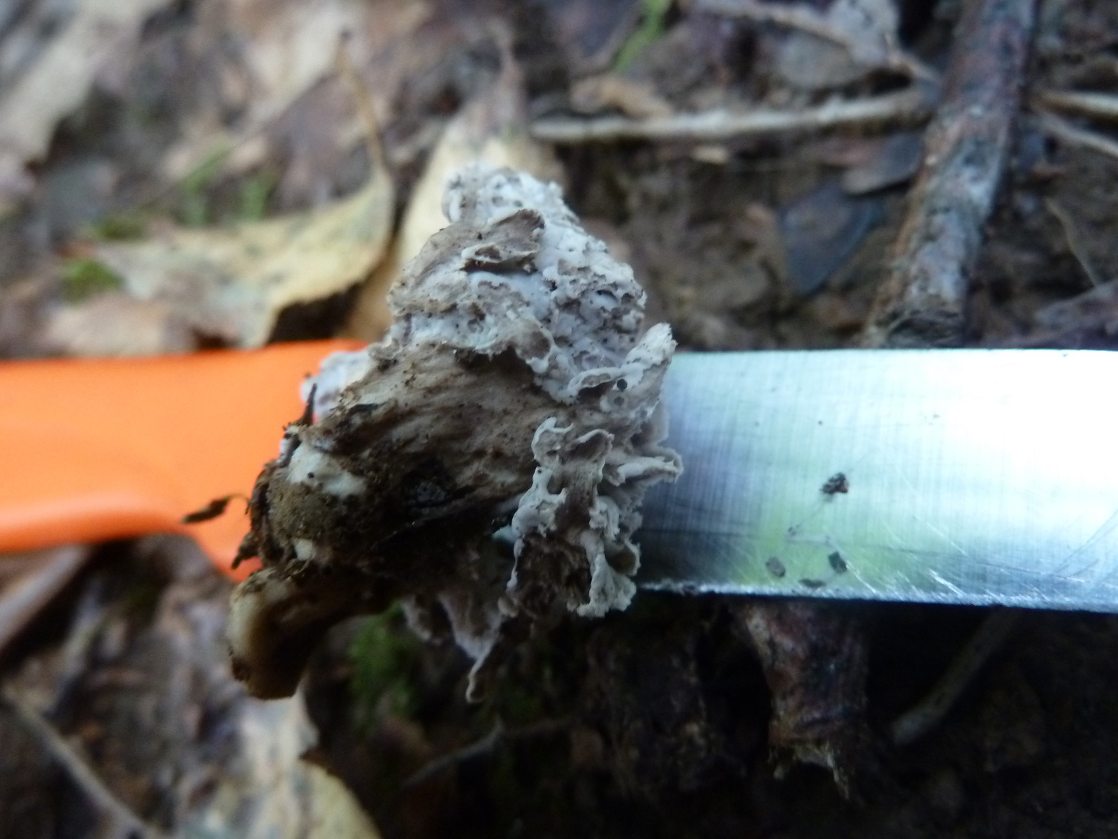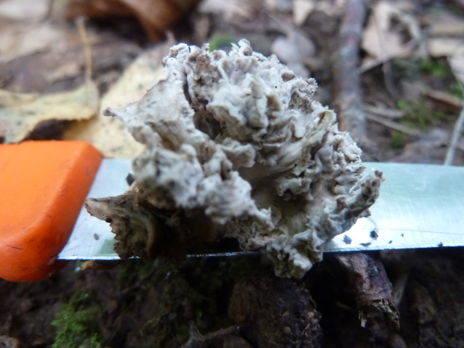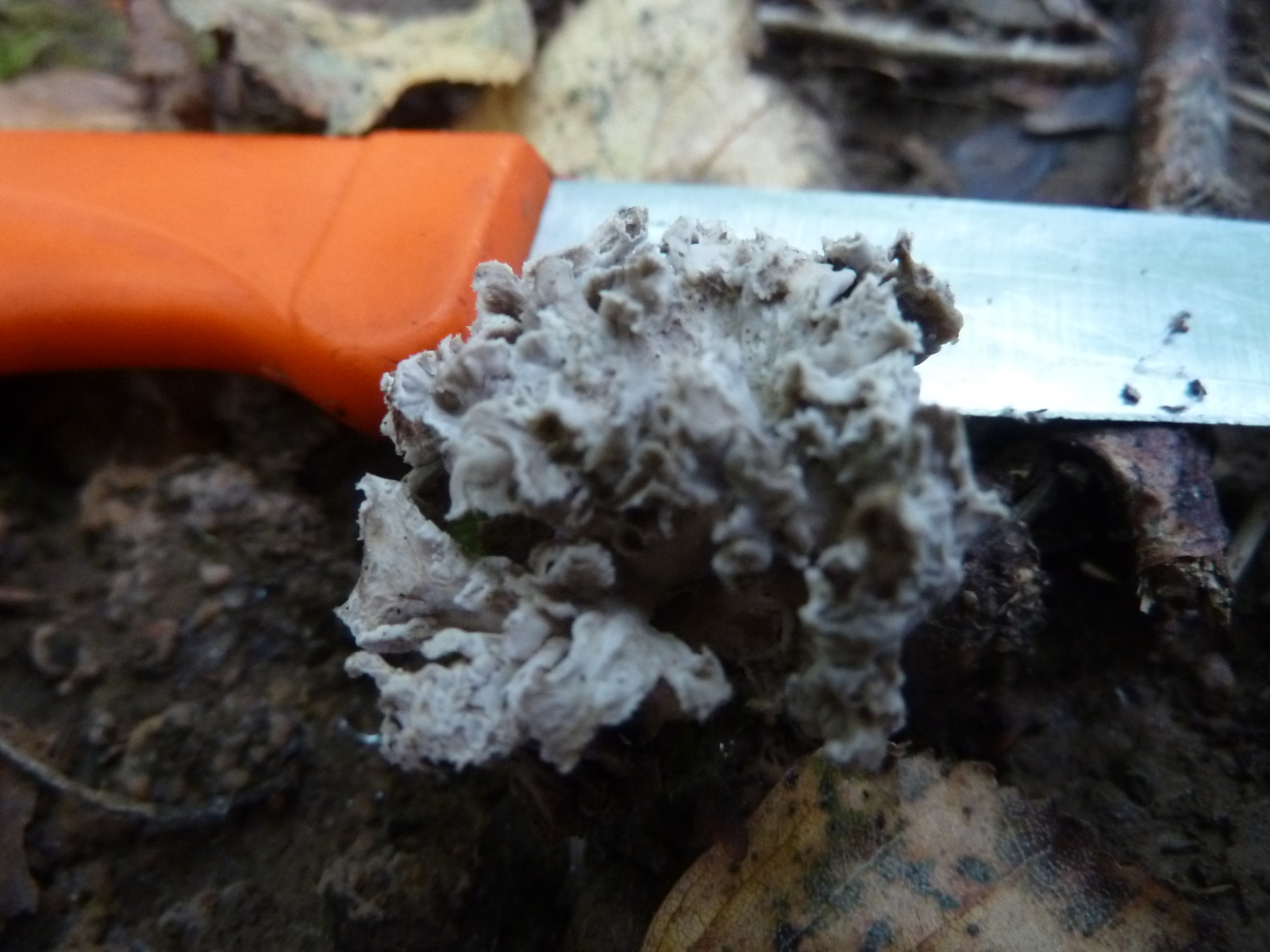 Da lehne ich mich trotzdem weit aus dem Fenster und tippe auf Krause Kraterelle Craterellus sinuosus.