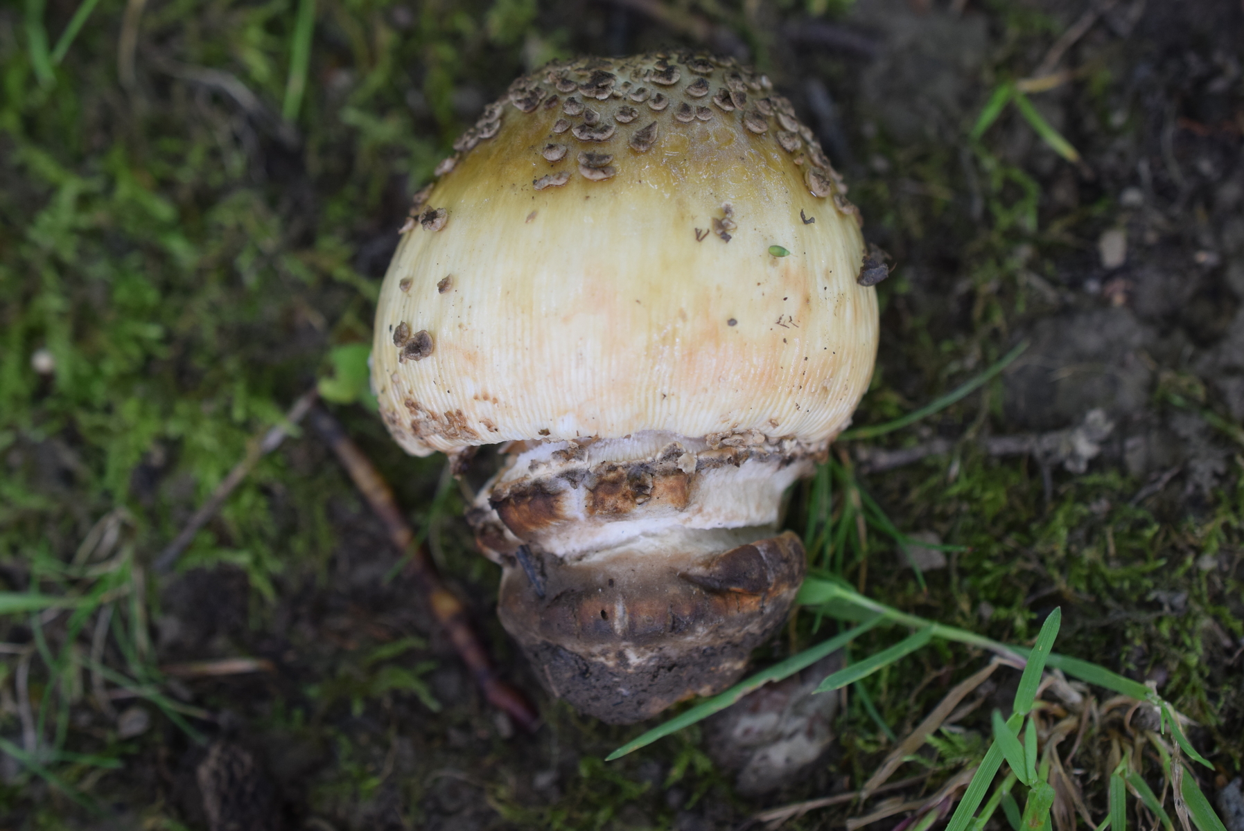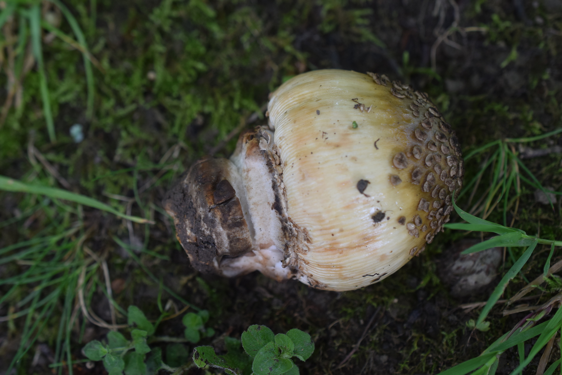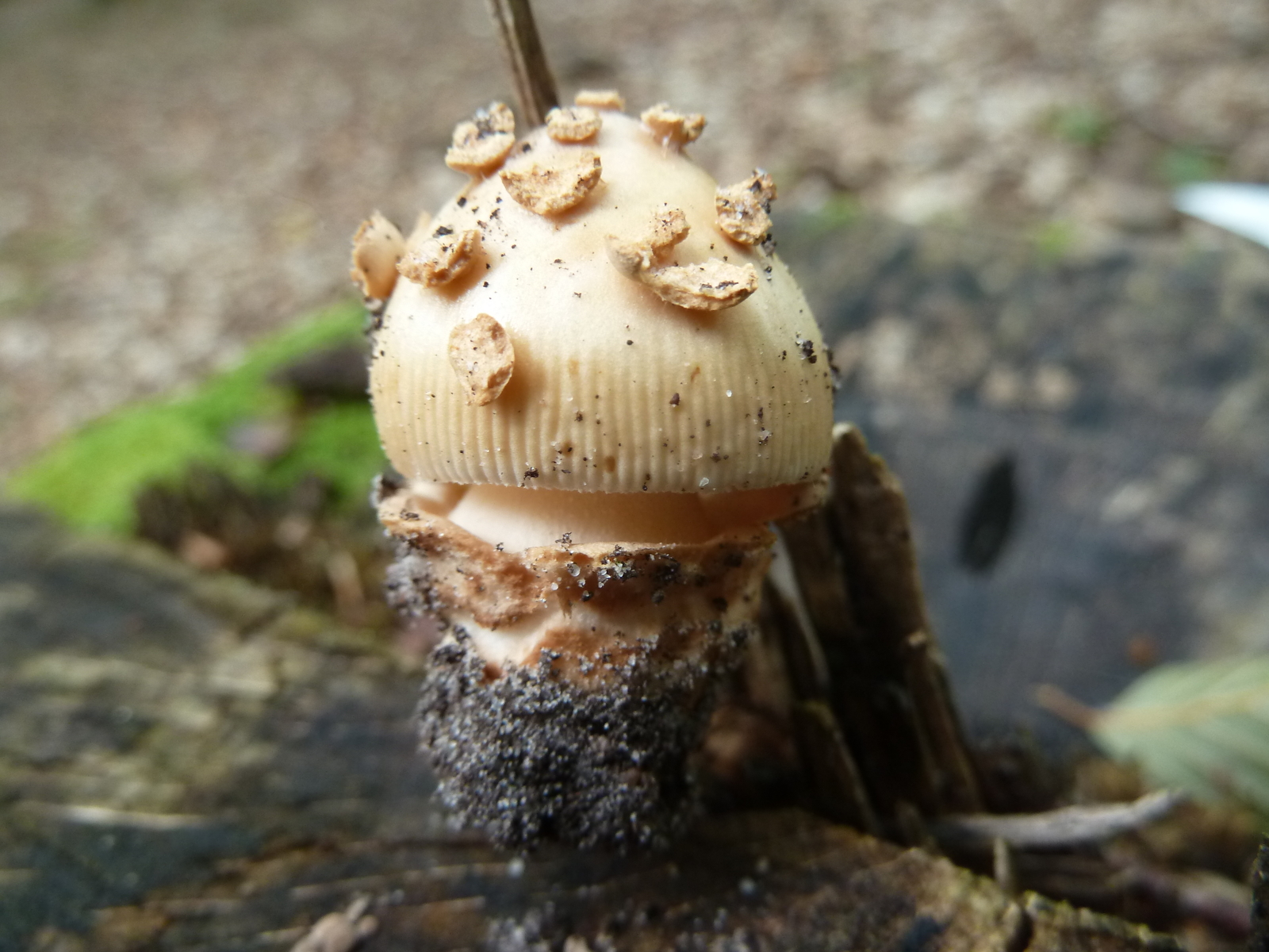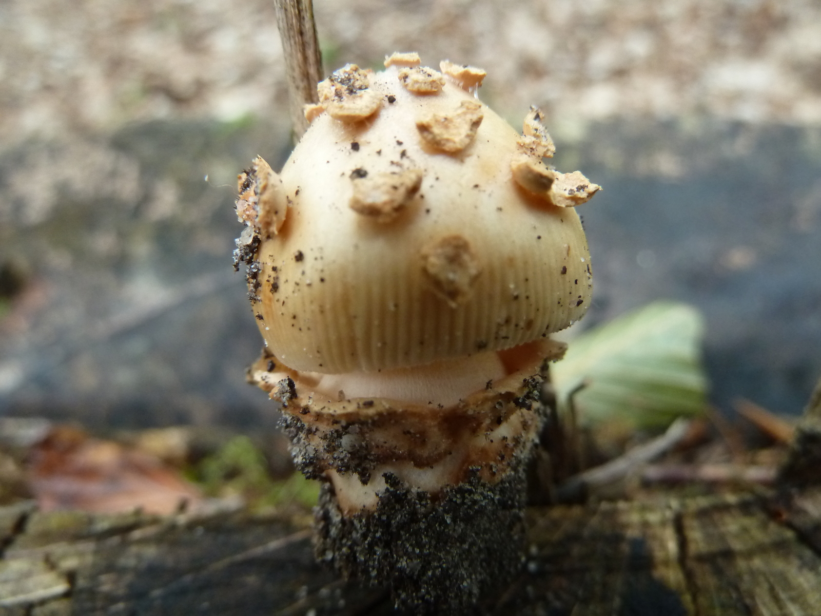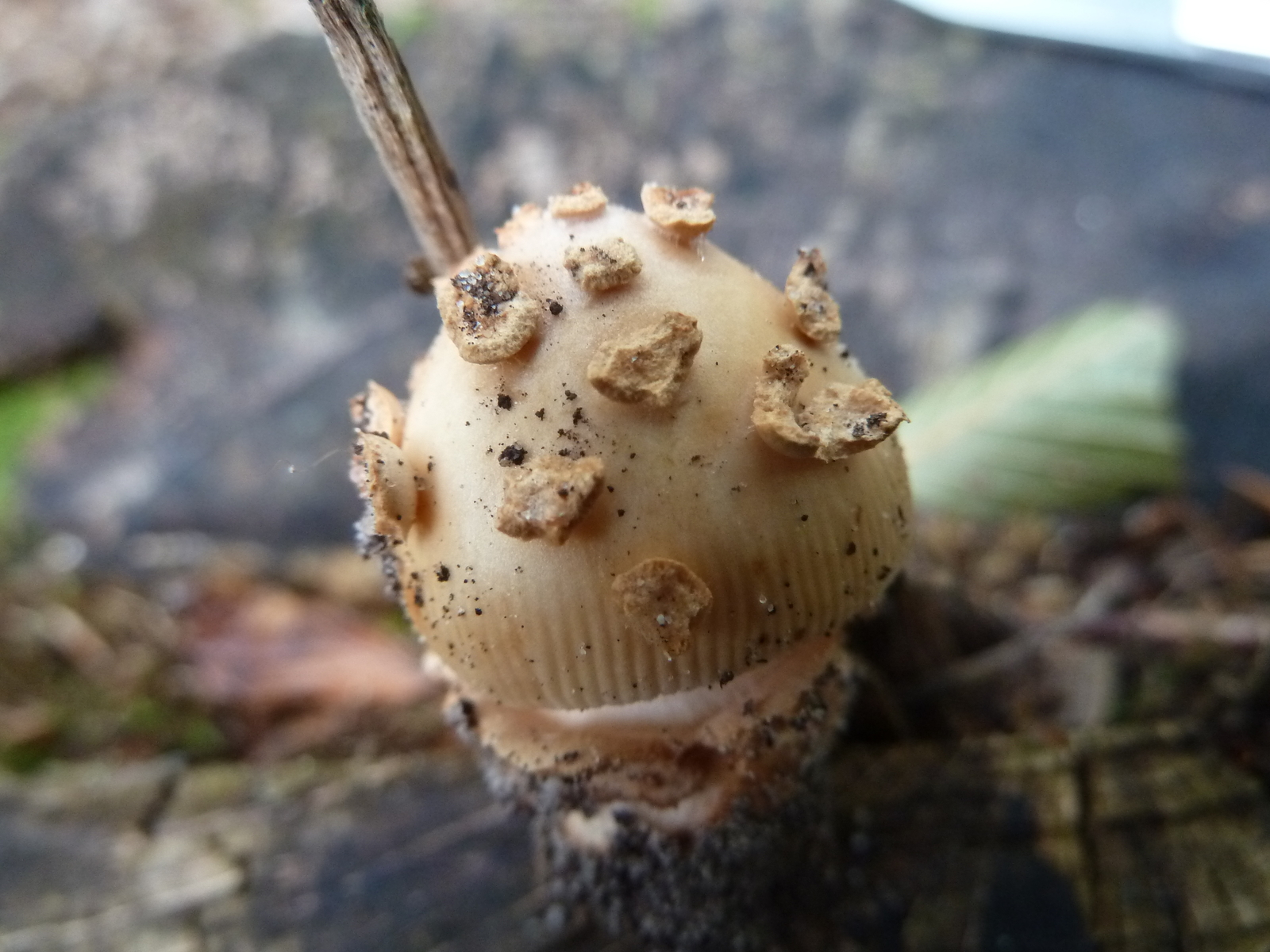 Diesen Winzling habe ich heute im Eichen-Buchen-Kiefern-Mischwald auf eher saurem Buntsandstein gefunden. Ist das ein ganz junger Scheidenstreifling oder was anderes? Leider nur dieses Einzelexemplar, aber vielleicht hat ja jemand sowas schon in verschiedenen Entwicklungsstufen gesehen.