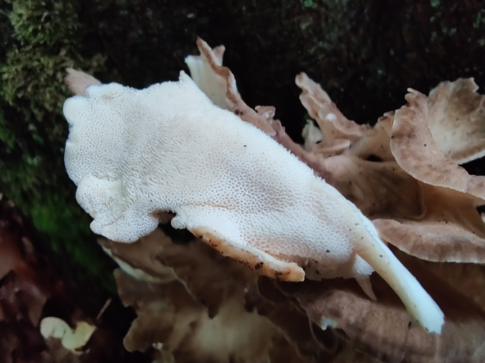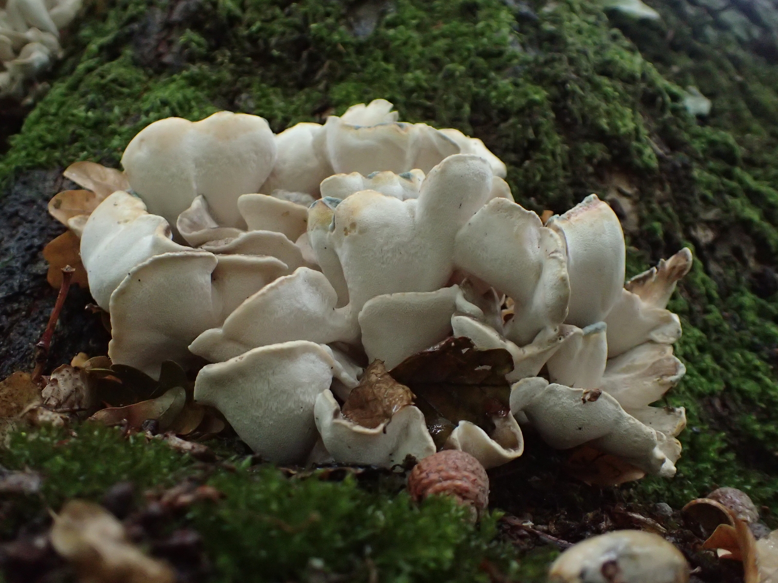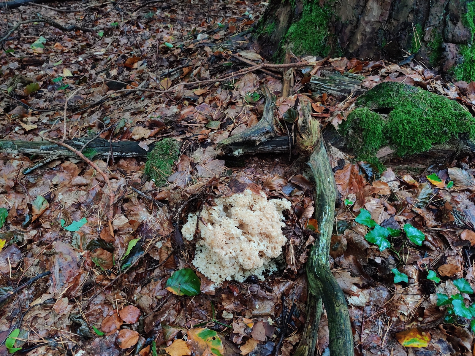 An Bilder von Luca ist kein Nadelbaum zu sehen aber nur ein Paar Meter links oder rechts muss Nadelbaum sein . Neben gefragte Pilz ist a Sparassis - Krause Glucke gefunden , auch ein Nadelbaum Partner . Warscheinlich Gefragte Pilz und Krause Glucke Parasitieren an gleiche Nadelbaum Wurzeln . ( Wurzeln kann bis 50 und mehr Meter lang sein .)