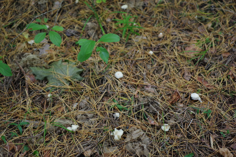 Aus dem Kiefernwald (sonst kommt höchstens noch ein einzelner Ahorn und weiter weg stehende Fichte in Frage) habe ich diesen reinweißen Ellerling, der in größerer, lockerer Ansammlung steht. Hutgröße bis 3 cm. Lamellen sehr weit herablaufend. Geruch angenehm pilzig, Geschmack unauffällig.