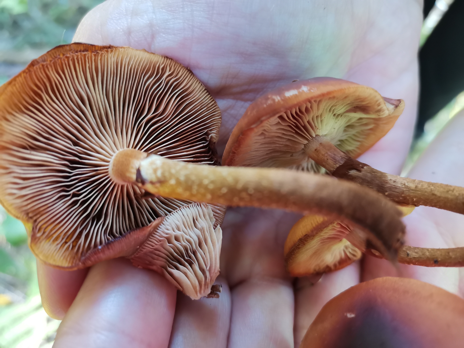 Hier mal ein Vergleichsbild vom Gifthäubling mit silbrig-weiss überfasertemn Stielen,
