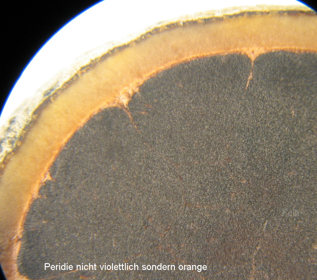 Im Schnitt Peridie erst weißlich -orange, länger Zeit später dann mit violettem Ton