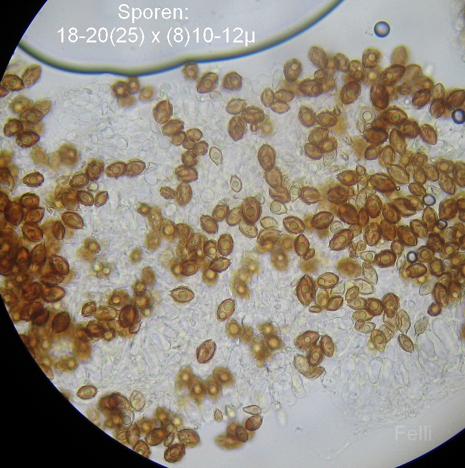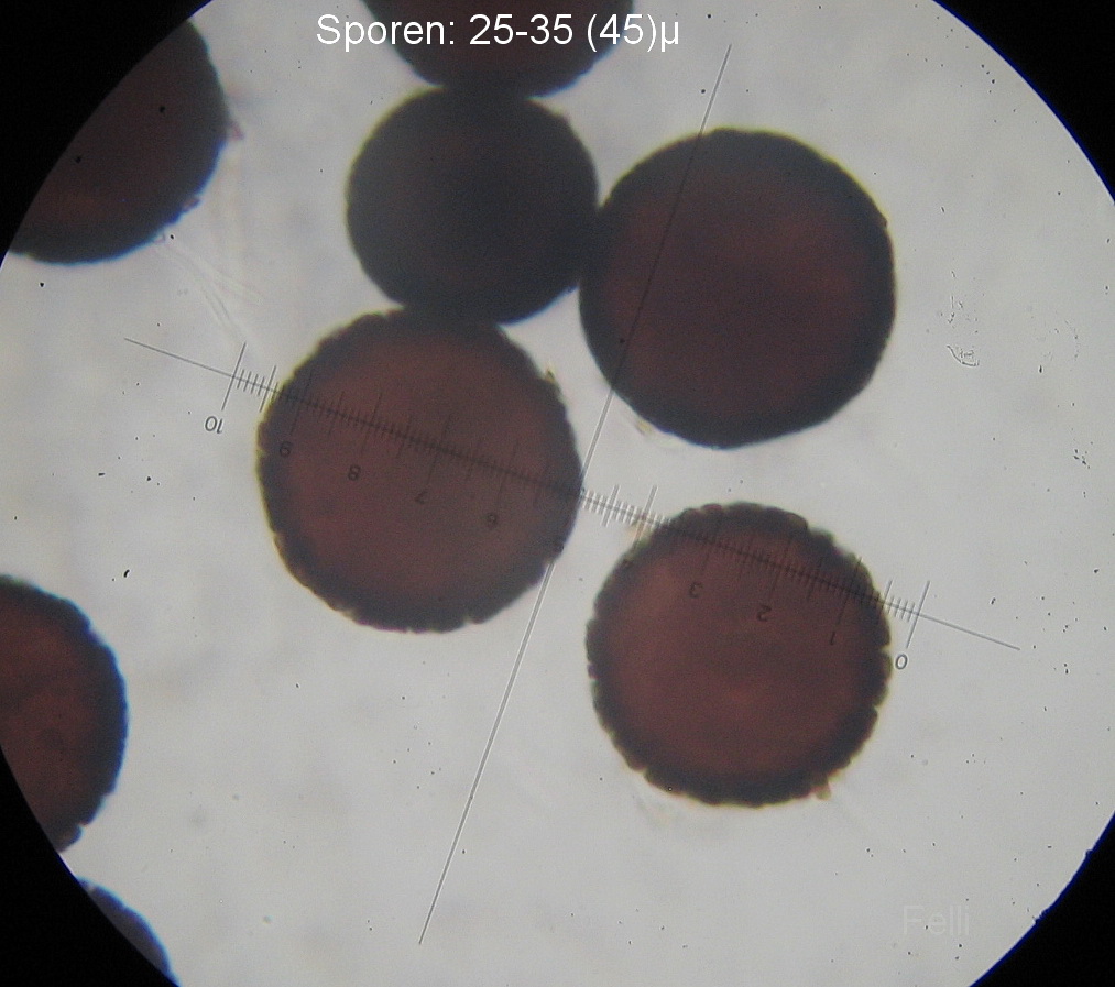 Die Sporen sind recht groß, teilweise sogar bis 45µ, der Schnitt lag aber so um die 30µ