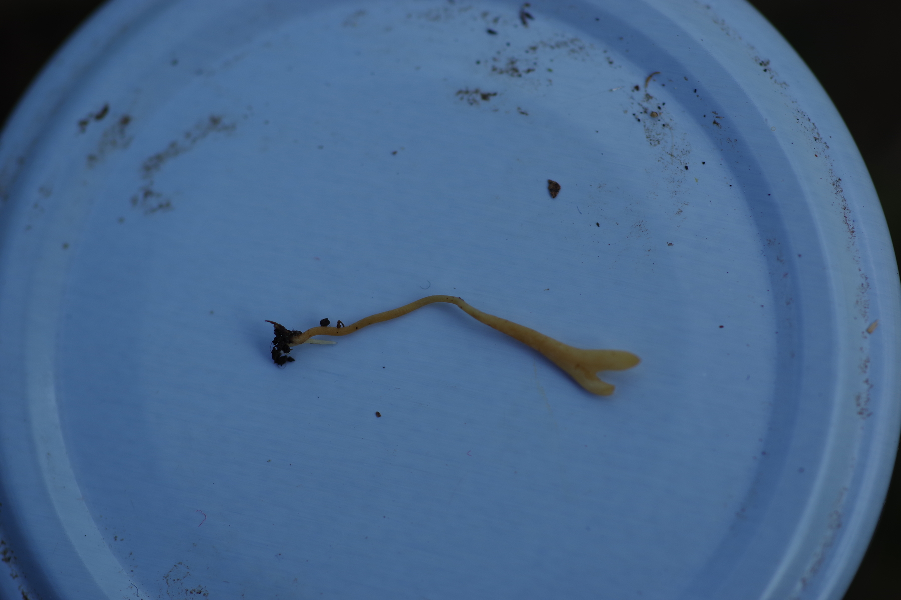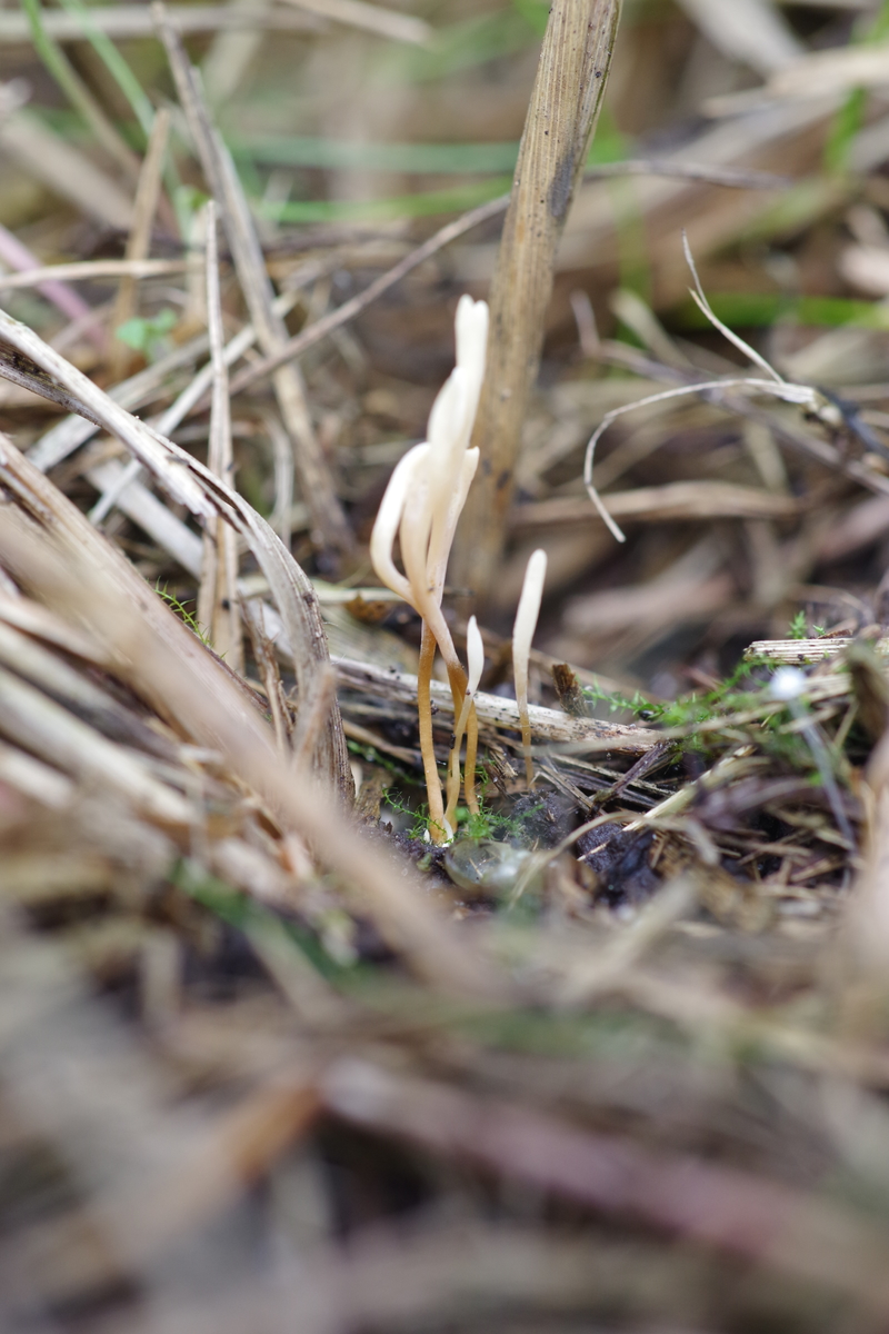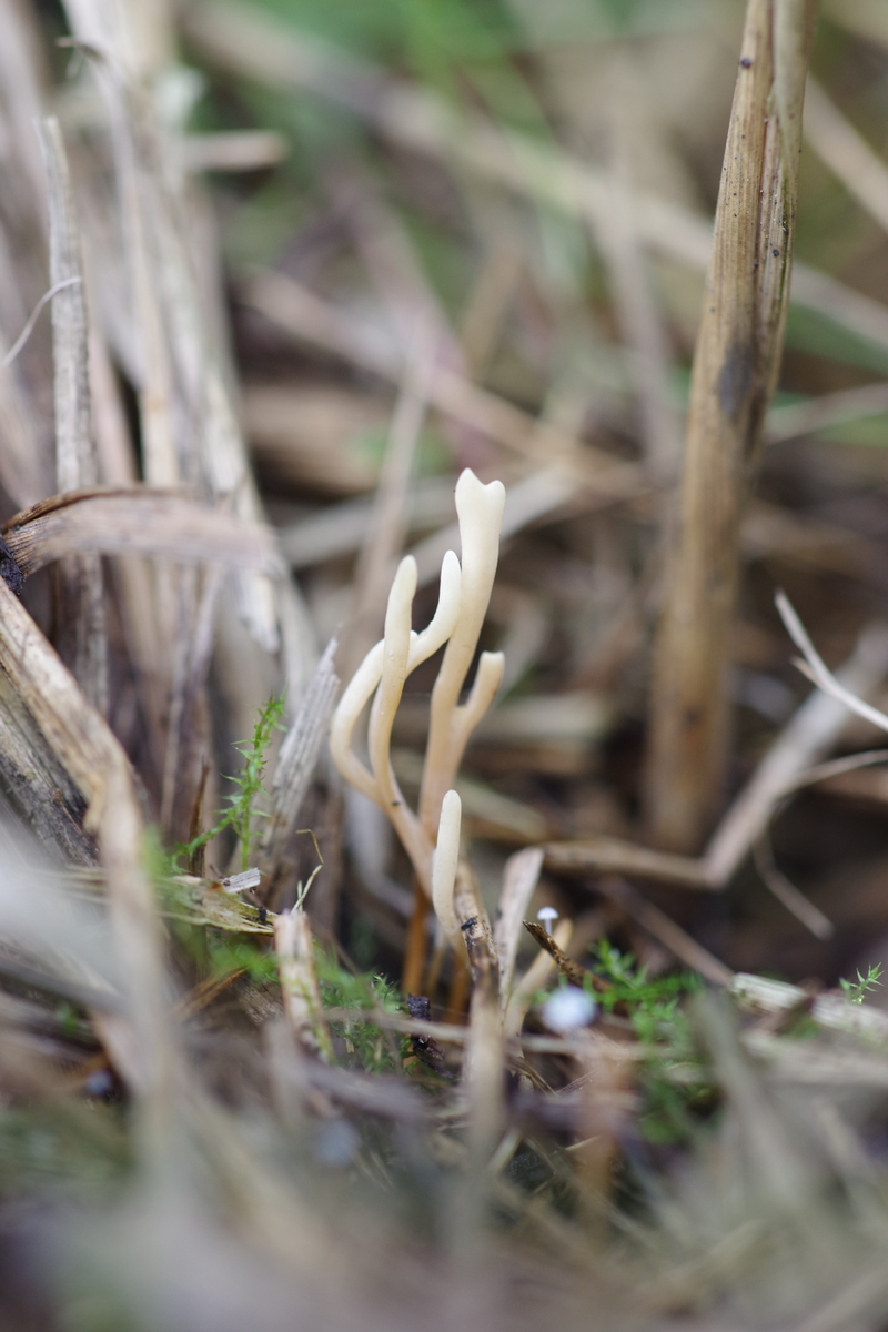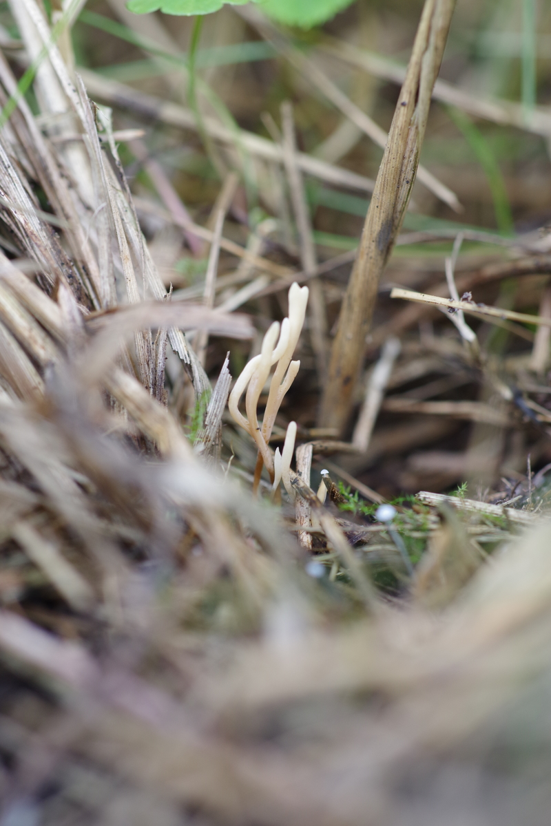 1) weiße bis beigefarbene Keule, teils verzweigt, mit deutlich abgesetztem Stiel (Clavaria / Clavulinopsis sp.), ich gehe davon aus, dass das alles die selbe Art ist da auf 2 qm gesammelt