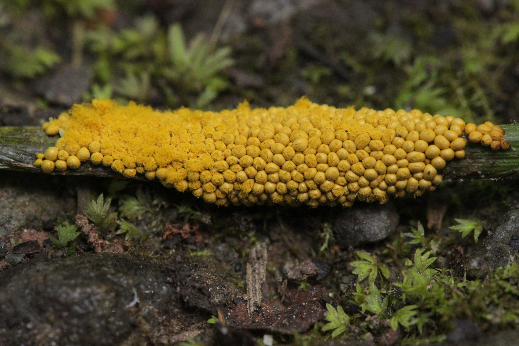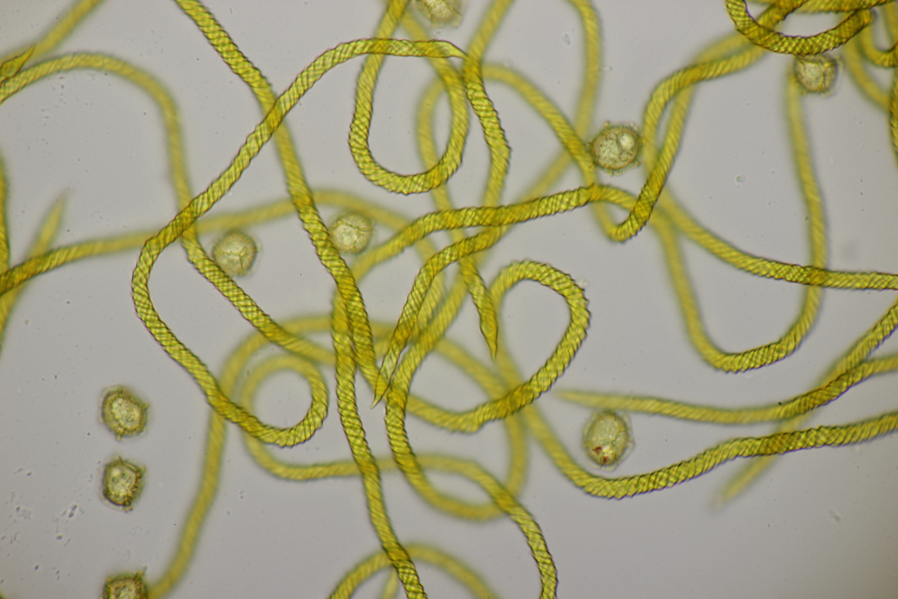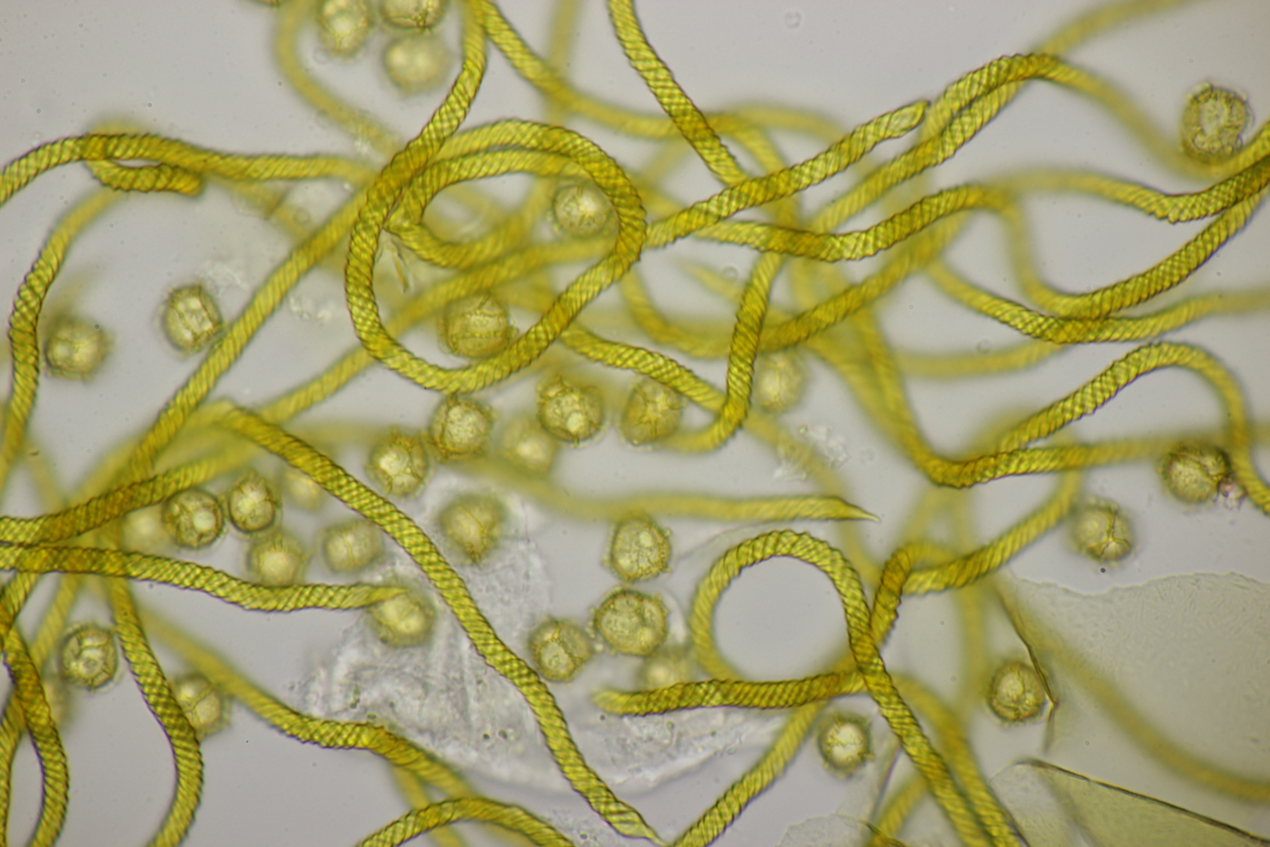bei der APR-Exkursion an der Fuelbecker Talsperre am letzten Sonntag habe ich auch einen hübschen Schleimpilz gefunden. Die Fruchtkörper sind sitzen, ungefähr genau so hoch wie breit, das Capillitium hat mehr als 2 Windungen, kurz Enden und ist ca 4 µm breit. Die Sporen messen 11-13.5 µm und haben ein grobes Netz. Damit lande ich bei Trichia affinis. Geht ihr da mit?