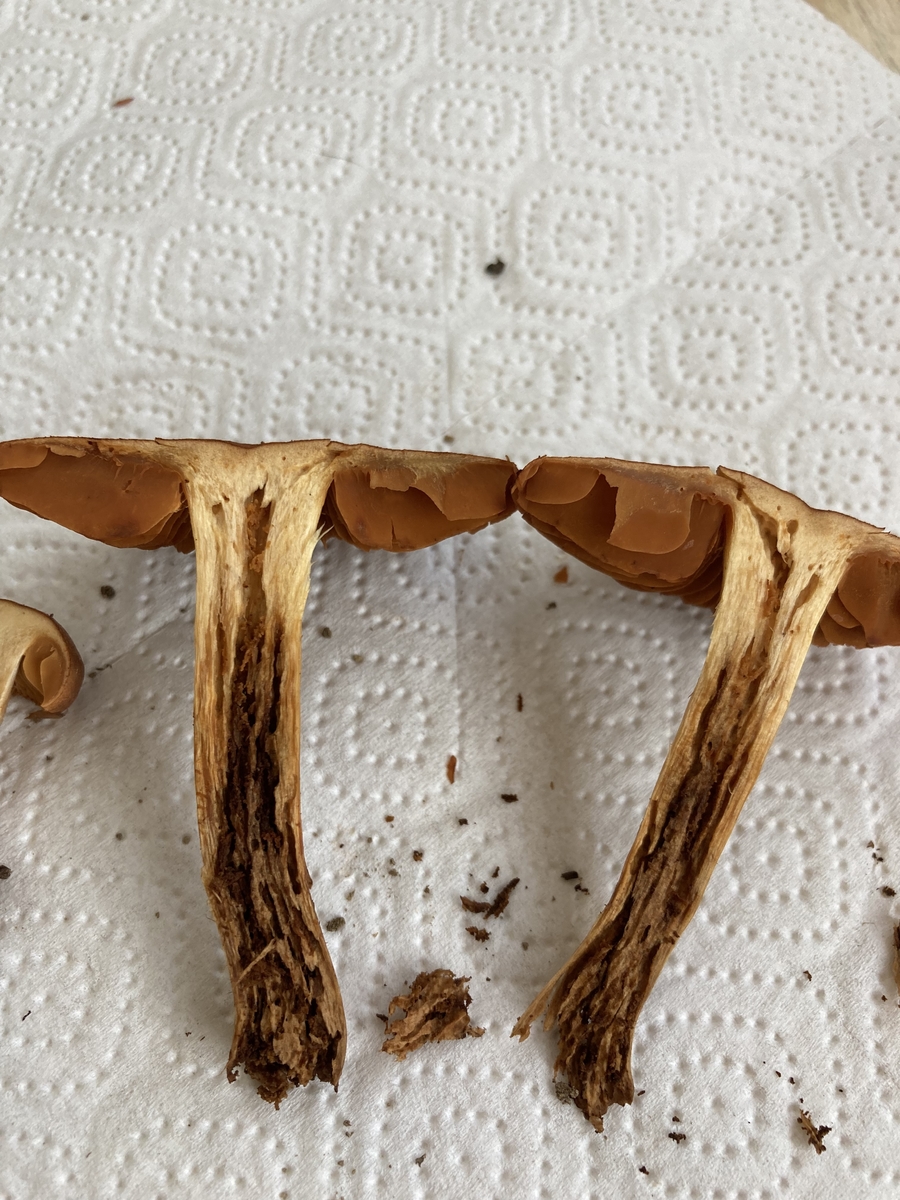 Jetzt habe ich den Test zur Unterscheidung Raukopf/Hautkopf mit Brennspiritus gemacht und beim älteren Fruchkörper verfärbt sich das Tuch etwas gelblich. Beim jüngeren allerdings verfärbt nur die Huthaut das Tuch gelblich und sonst nichts…