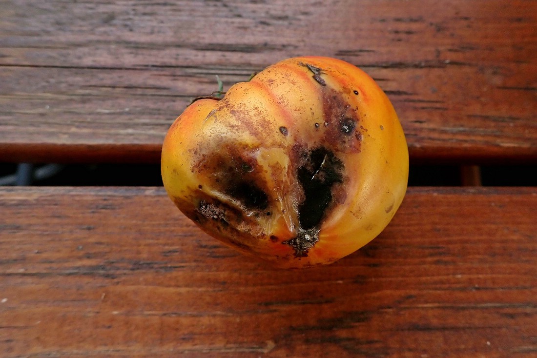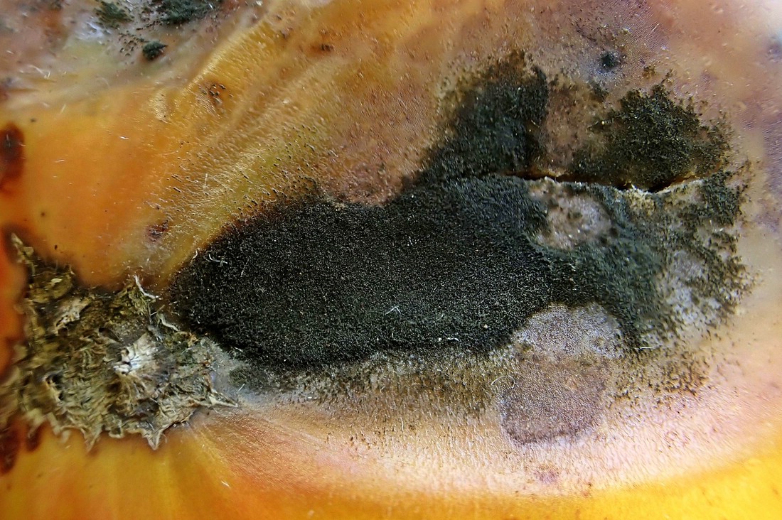 An einer auf unserem Balkon gewachsenen Tomate entdeckte ich vor einigen Tagen einen schwarzen Pilzteppich.