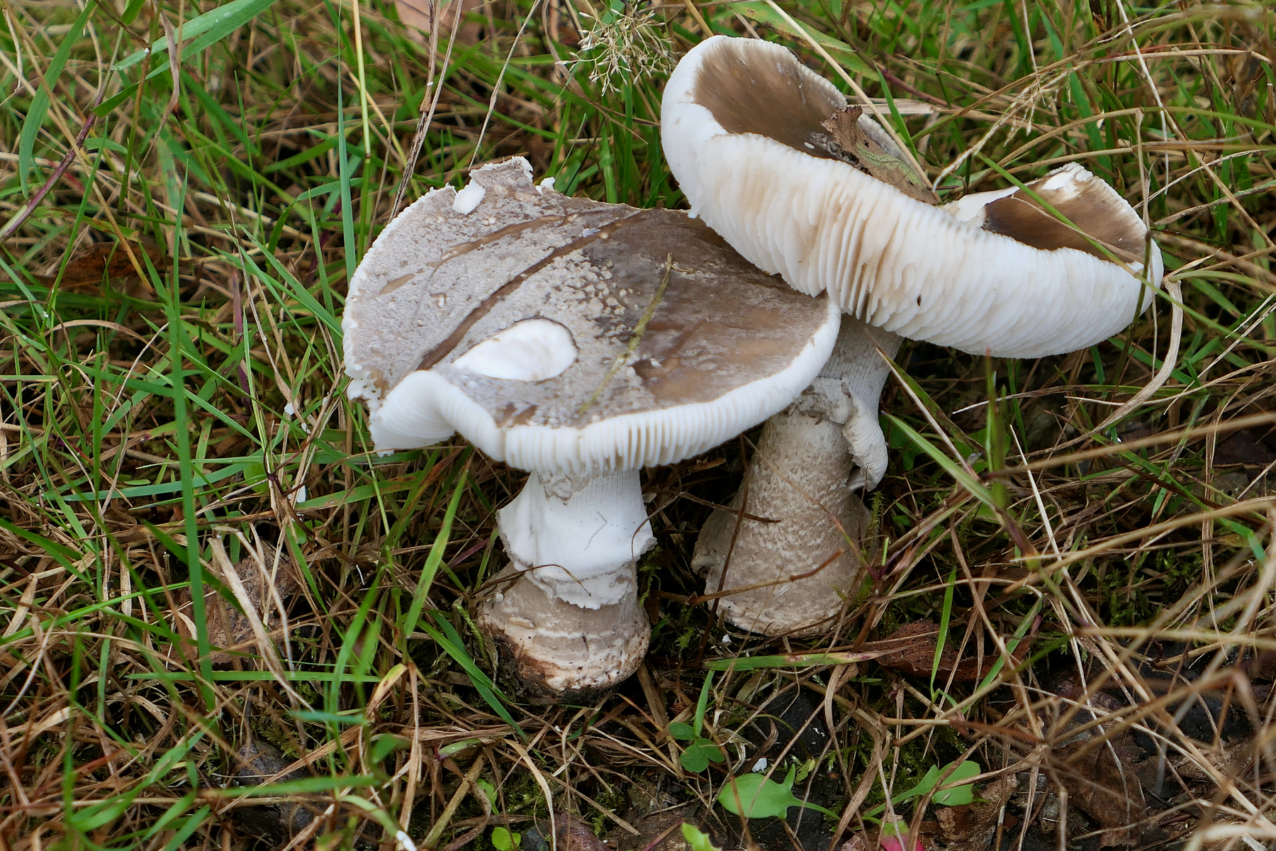 Meiner Meinung nach ein grauer Wulstling, das rötliche kann äußerlich vom Boden stammen,