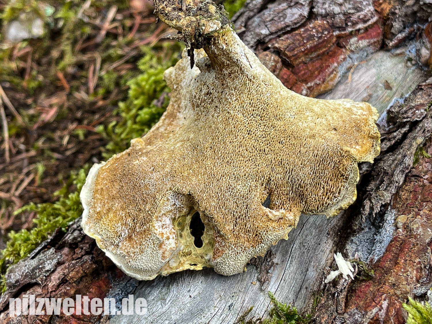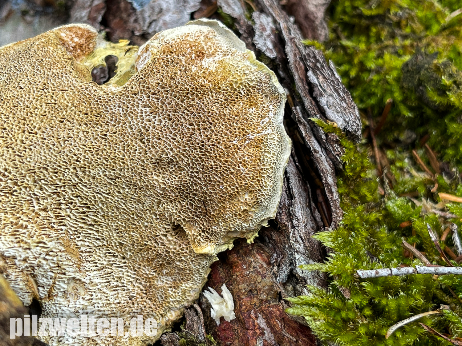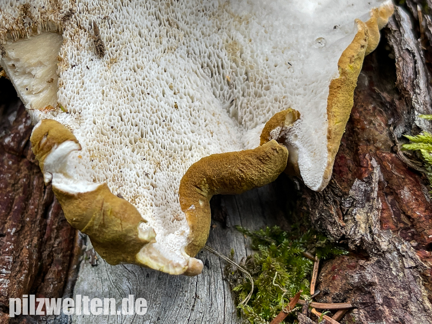 Poren eines alten Fruchtkörpers waren deutlich gelbbräunlich verfärbt: