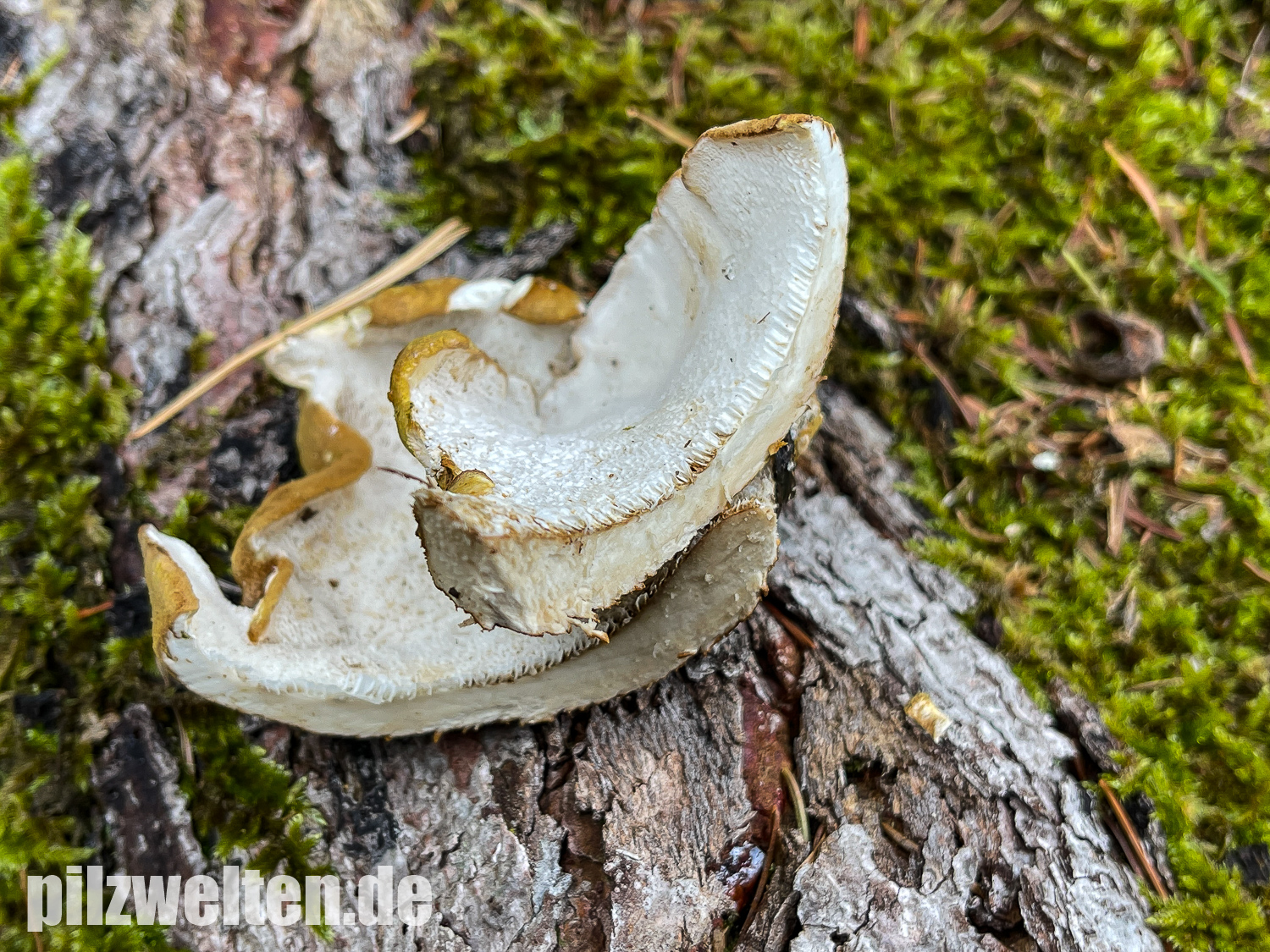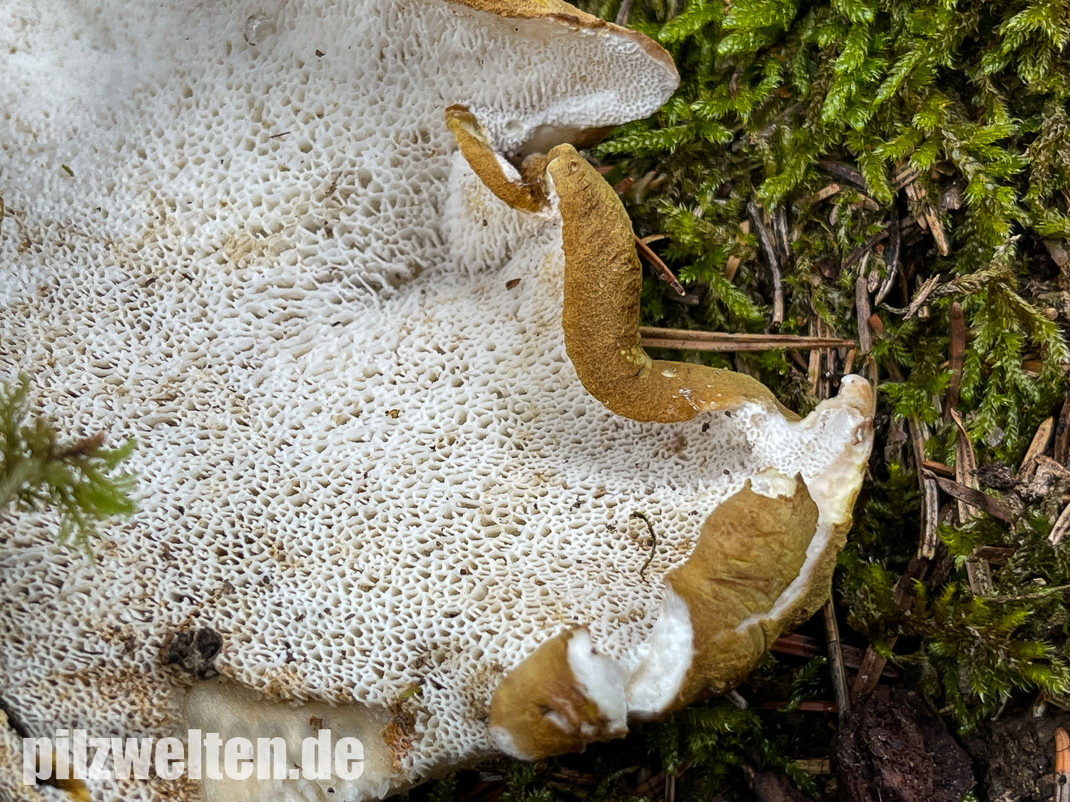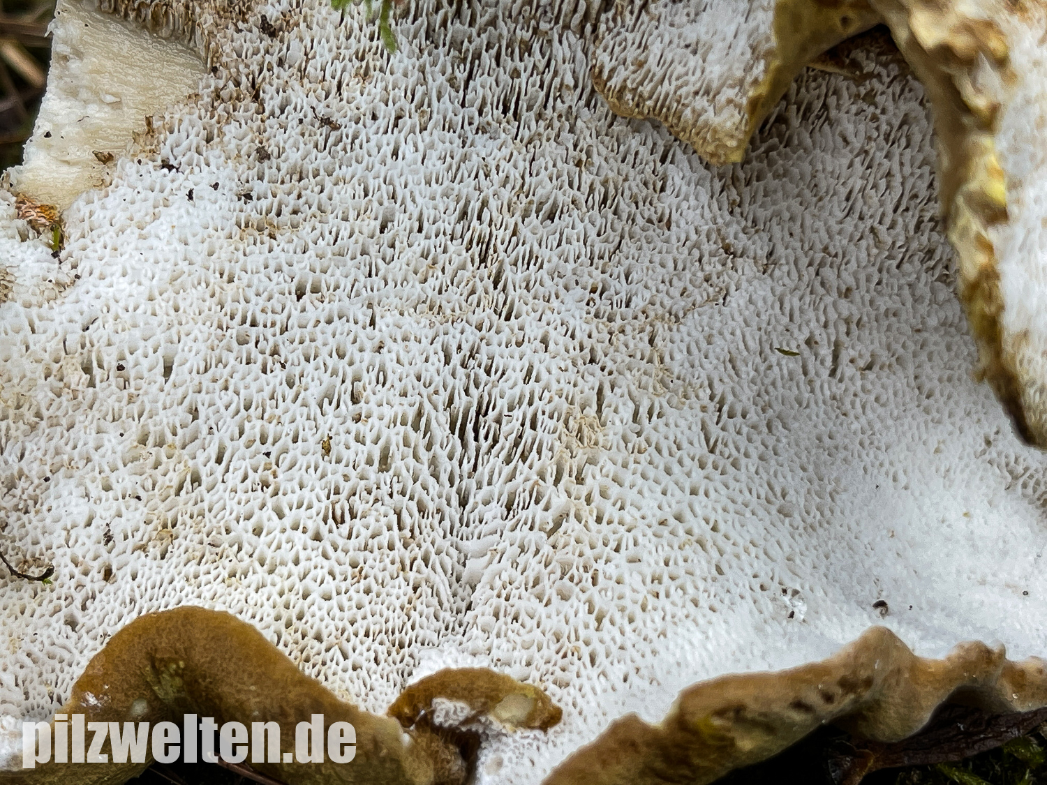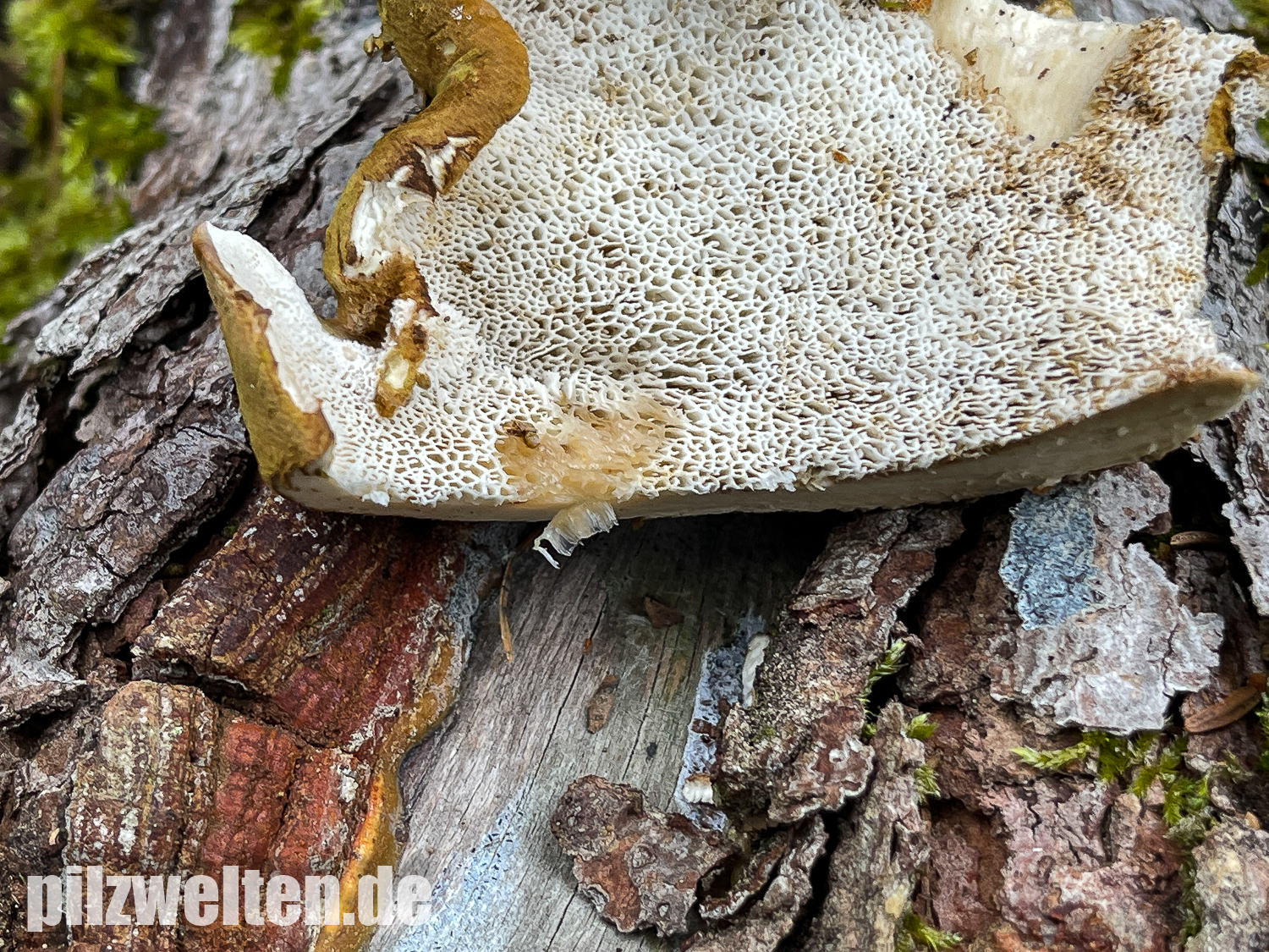 Poren eines alten Fruchtkörpers waren deutlich gelbbräunlich verfärbt: