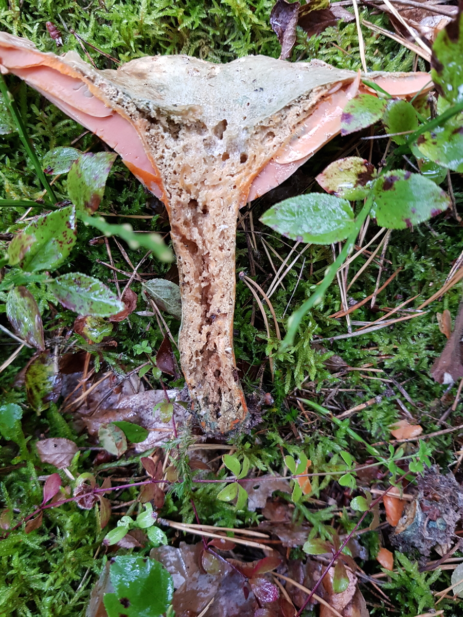 Lamellen rosa; herablaufend; „rosa“ milchend - meine Finger waren so gefärbt, ob eher rosa oder violett, darüber kann man unterschiedlicher Meinung sein - zumindest ich.