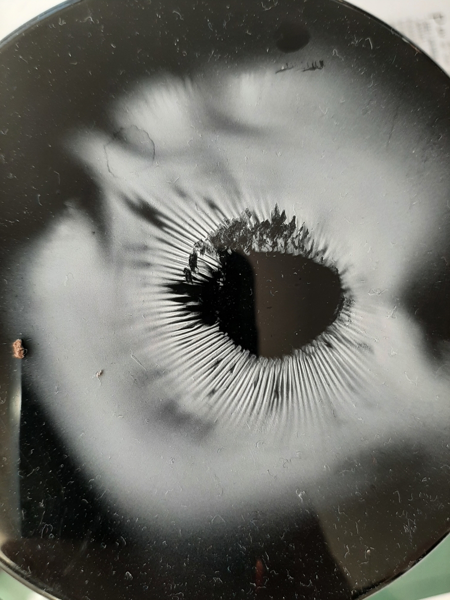 also die Lamellen fühlen sich etwas wachsartig an und brechen wirklich gar nicht weg, auch nach mehrmaligen streichen nicht. Der Sporenabdruck ist auch fertig, denke ich kann den Pilz dann als Frauentäubling ablegen. Übrigens ist der Hut nicht nur grün sondern auch leicht lila nur das Foto gibts nicht ganz her (ich weiß die Farbe sagt nicht viel aus aber zur Vollständigkeit)
