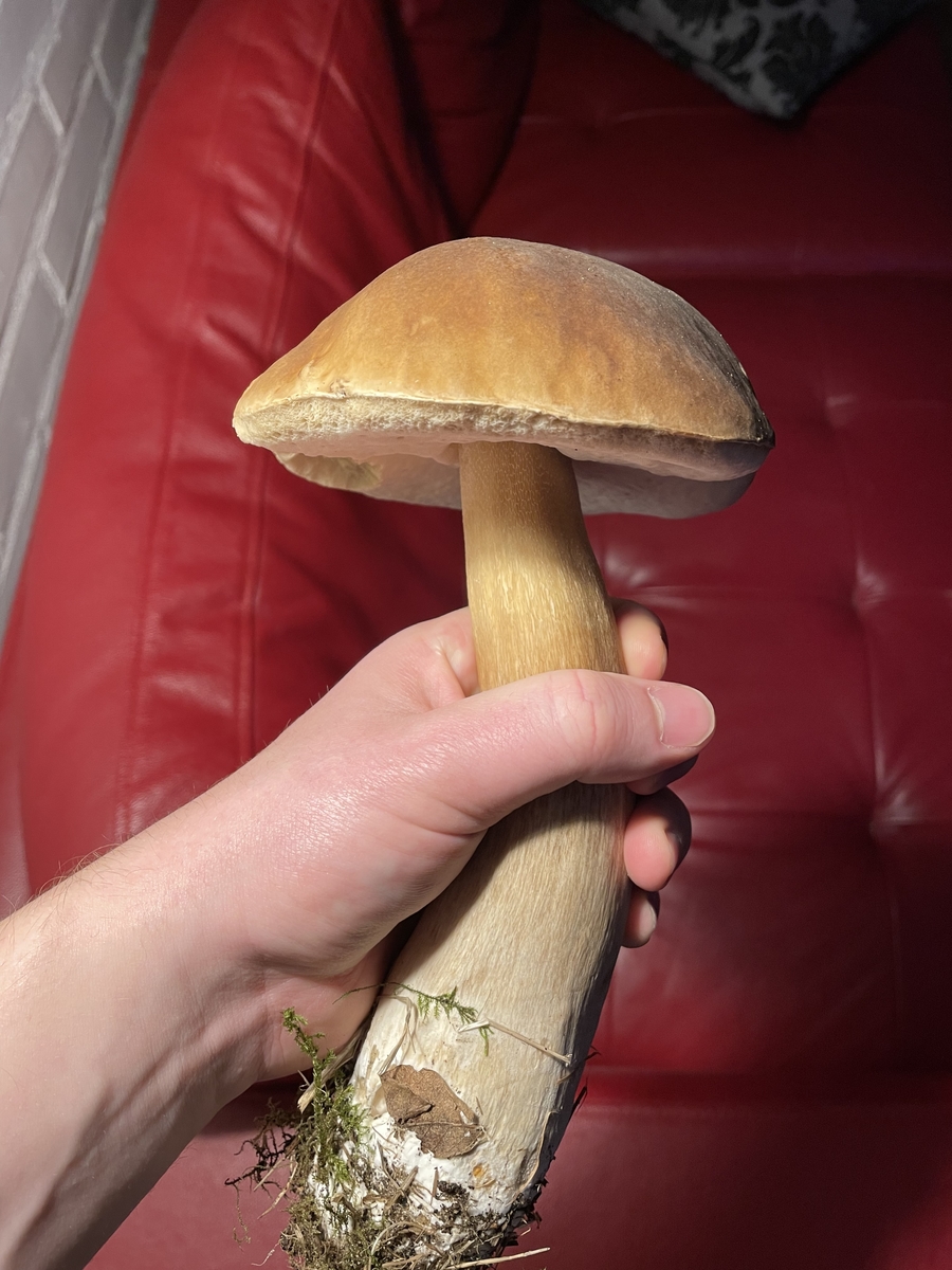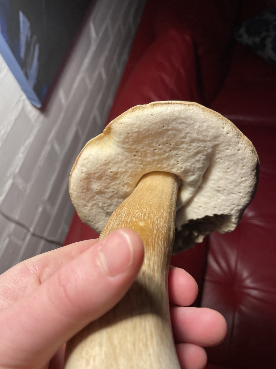 gestern am Fichtenwaldrand in Dänemark genau neben einem Straßengraben ins Auge gesprungen. Konnte ich nicht stehen lassen. Leider waren keine weiteren in Sichtweite. Größte Exemplar, was ich bisher fand. Fleisch noch schön fest & Röhren weiß.