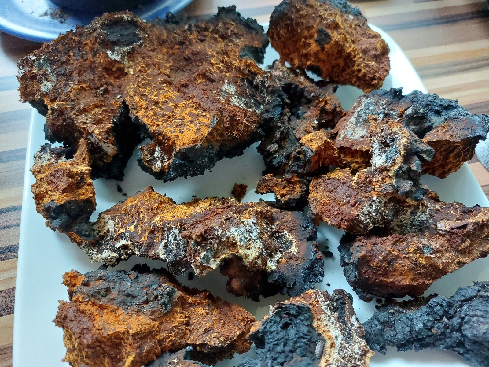 Bei mir ist es echt ein Kandidat, wo ich unsicher bin. Teile des Bildes sprechen auch für einen Chaga. Auch wenn für mich NICHTchaga wahrscheinlicher ist. Wenn man Teile rausbricht, wird das aber klar Also ran: Hammer, Meißel oder was auch immer. Geht man an so ein Gebilde ran (nein, das geht nicht zerstörungsfrei) bekommt man die Antwort!