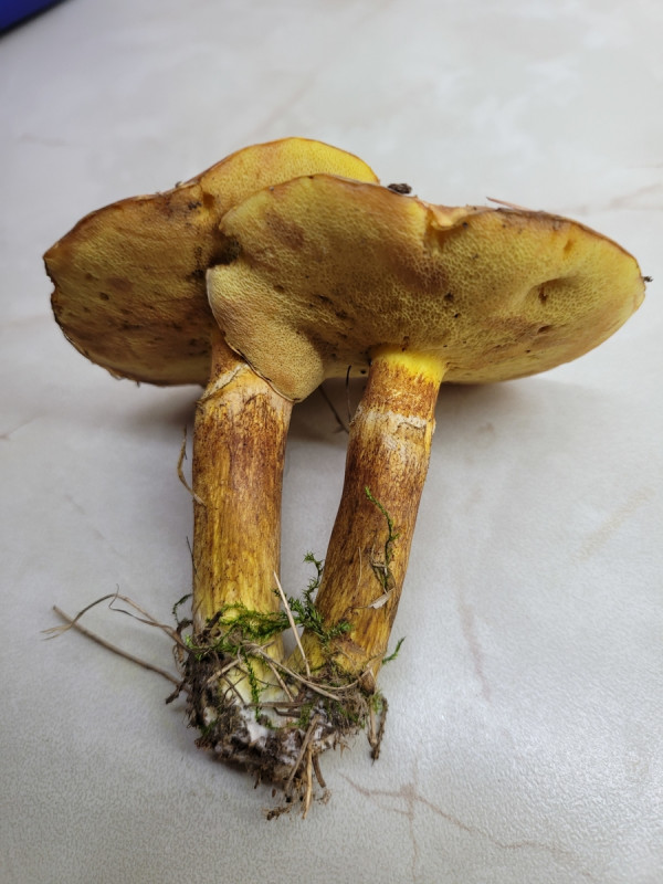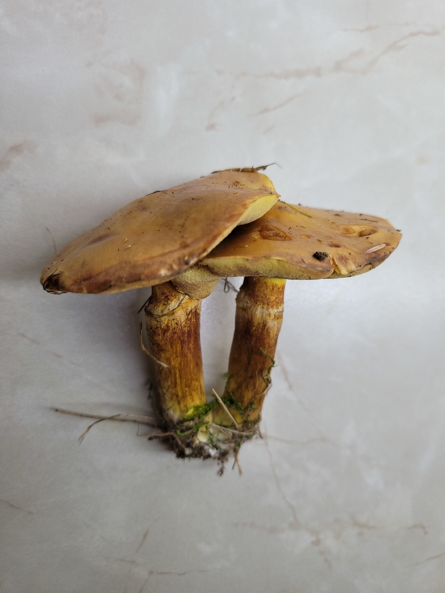Ich tippe auf Goldröhrling. Eventuell noch ein Ringloser Butterpilz. Aber um ehrlich zu sein weiß ich es nicht wirklich.